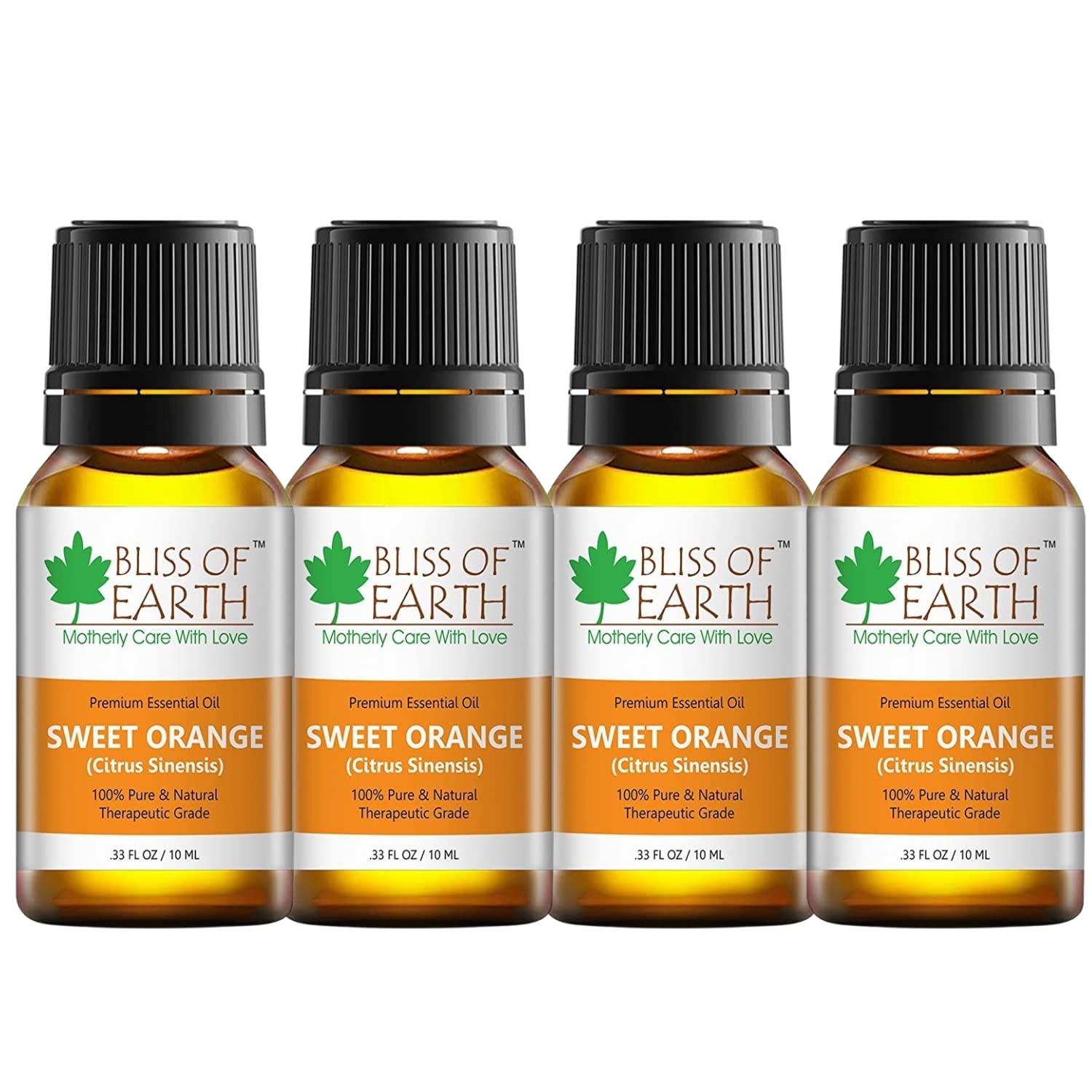 Bliss of Earth Premium SWEET ORANGE (Citrus Sinensis) Essential Oil 4x10ML 100% Pure & Natural Therapeutic Grade (Pack of 4)