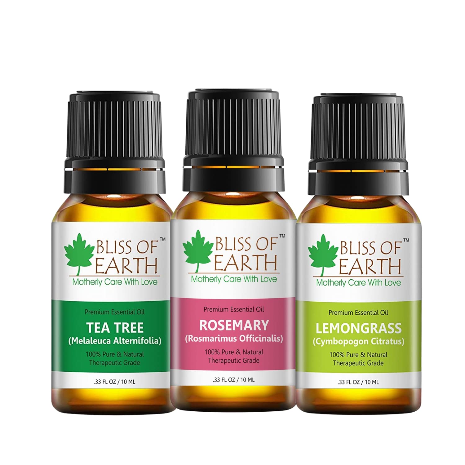 Bliss of Earth Australian Tea Tree Essential Oils. Bliss of earth and trade rosemary essential oil has a fresh sweet and herbaceous aroma which is relaxing restorative and refreshing. Should be used with care. Always dilute with bliss of earth career oils before any use other than aromatherapy.". Bliss of earthy 100 percent pure lemongrass essential oil - 10 ml bottle - finest quality therapeutic grade essential oils - ideal for aromatherapy bliss of earthy lemongrass essential oil has a fresh lemony and earthy aroma which is relaxing restorative and refreshing. Benefits: Bliss of earthy lemongrass essential oil is one of the most versatile essential oil and is great for aromatherapy massage therapeutic usage including relief from excessive perspiration muscle aches stress and acts as insect repellent. Bleed-free this oil is highly concentrated and should be used with care. Always dilute with bliss of earth career oils before any use other than aromatherapy.