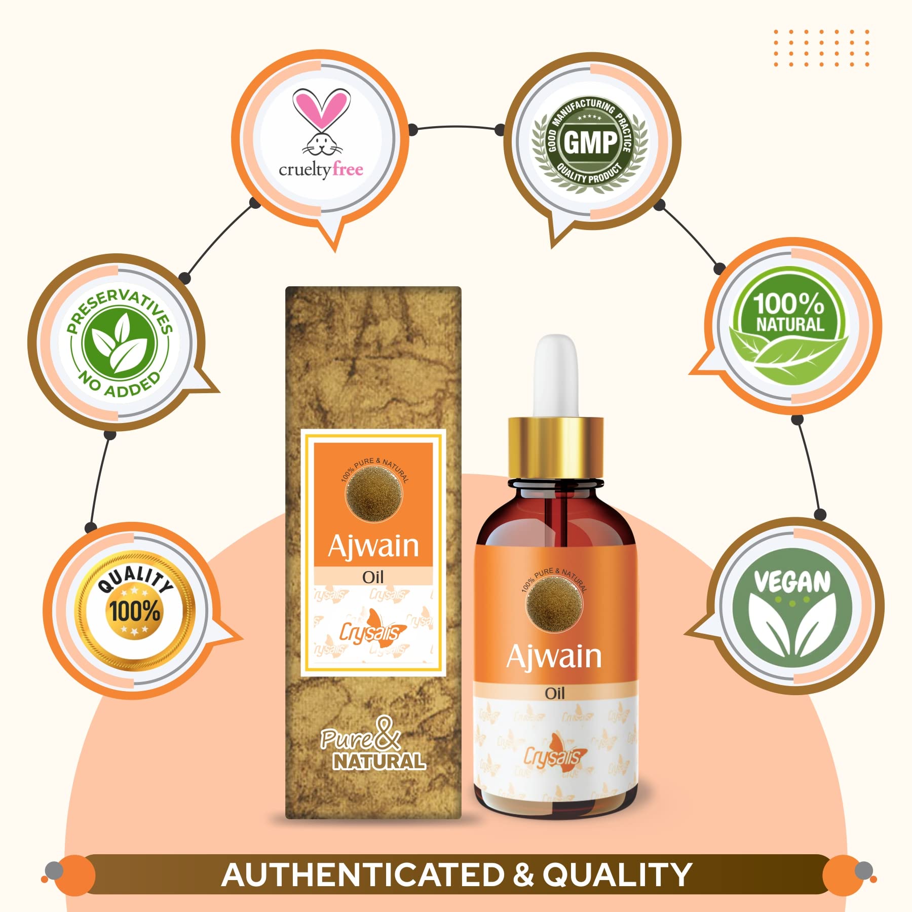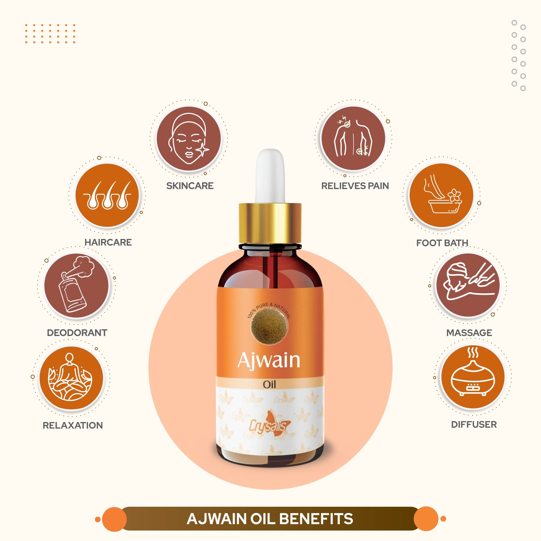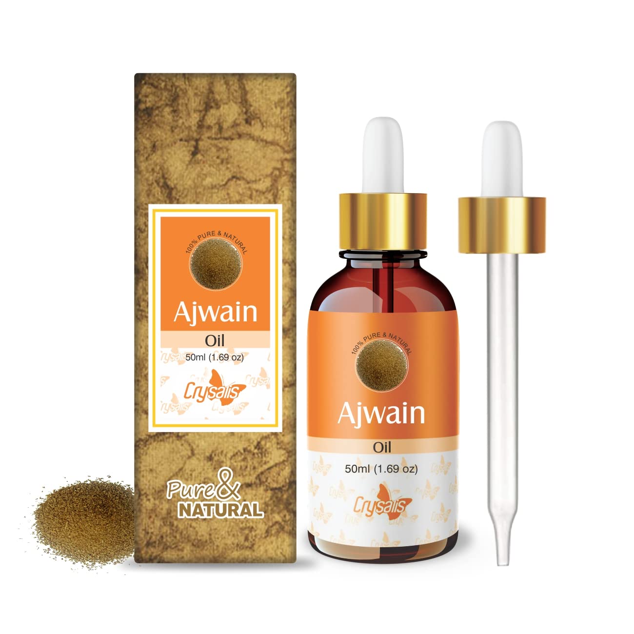 Crysalis Ajwain (Trachyspermum Ammi) Oil|100% Pure & Natural Undiluted Essential Oil Organic Standard For Skin & Hair Care|Manages Breakout Manages Dandruff Strengthens Hair - 50Ml With Dropper