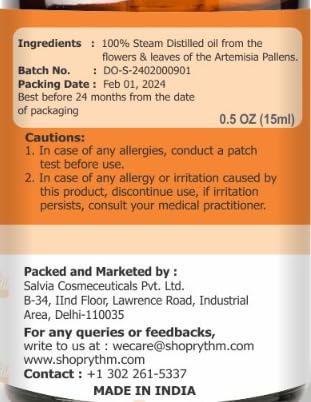 ?EXTRACTION METHOD: Davana oil is extracted from the flowers & leaves of Artemisia Pallens by the steam distillation method.