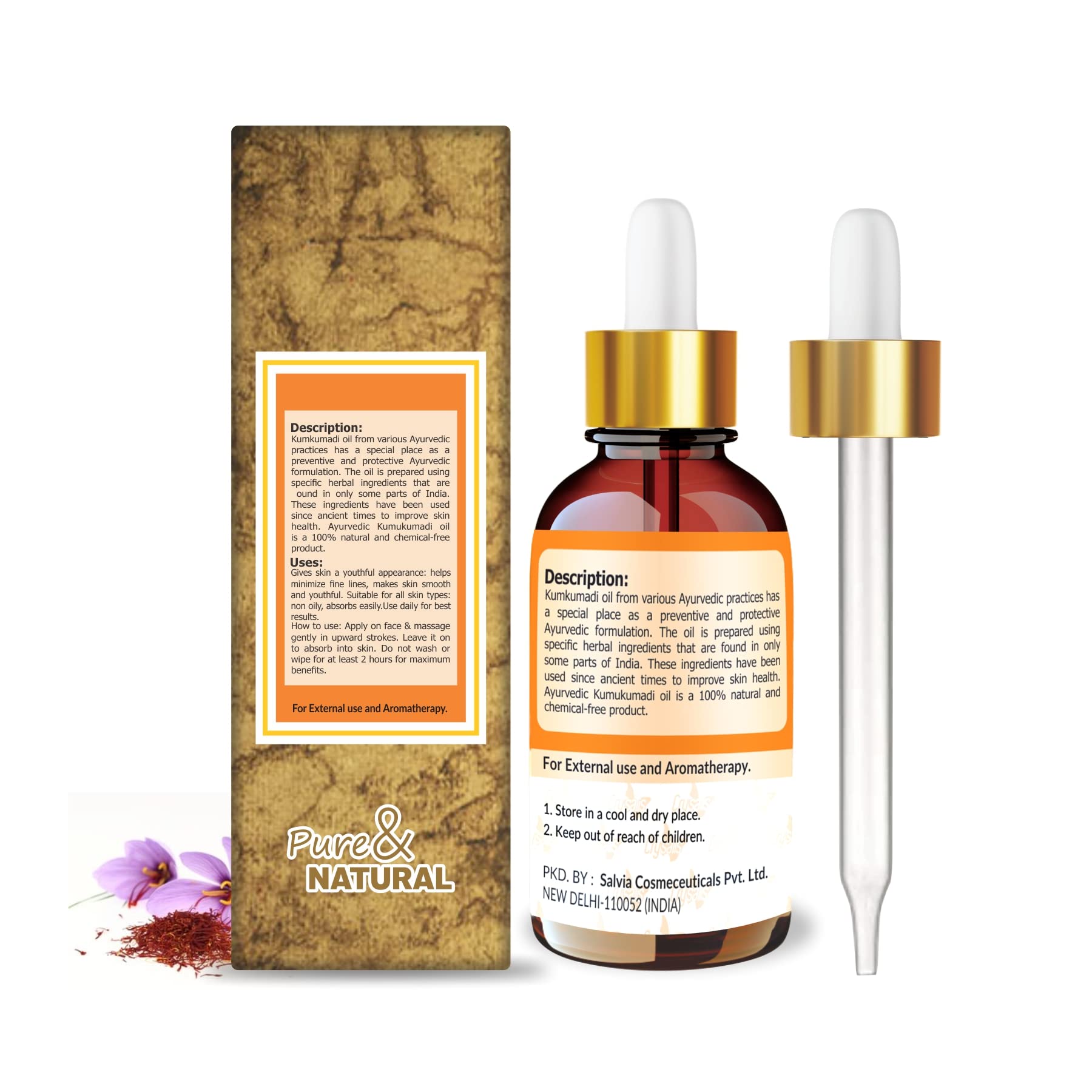 EXTRACTION METHOD: Kumkumadi oil is extracted from the flowers of Crocus Sativus by cold pressed method..