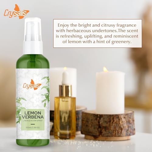Crysalis Lemon Verbena Linen And Room Spray Air Freshener | Long Lasting Aromatic Scent | Made With Essential Oils Fresh and Revitalizing Aroma - 100ml / 3.38 fl oz