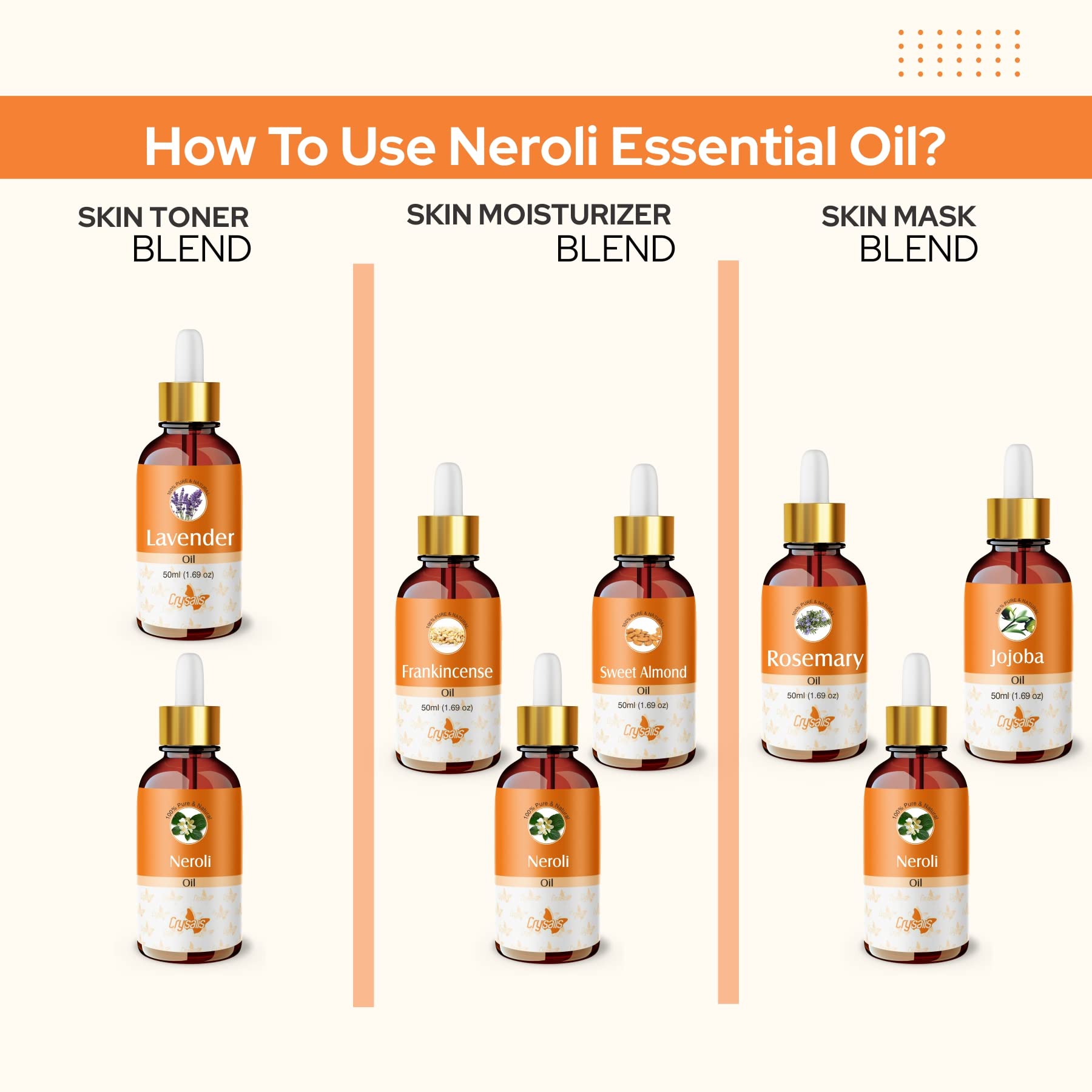 Crysalis Neroli (Citrus Aurantium Var. Amara) Oil |100% Pure & Natural Undiluted Essential Oil Organic Standard| For Clear Face Glowing Skin & Diffusers |Aromatherapy Oil| 100ml