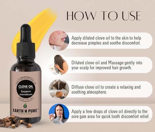 • Natural & Therapeutic: Earth N Pure Clove Oil is therapeutic grade pure and undiluted oil steam distilled from clove buds.