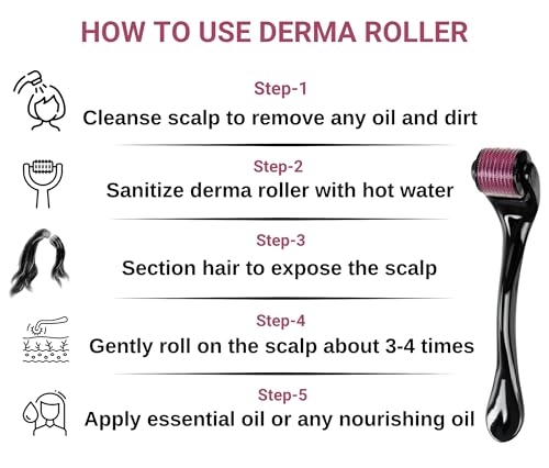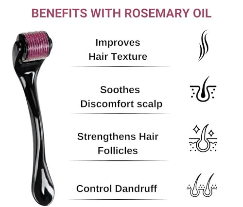 • Hair Growth: The derma roller’s action for blood circulation to the scalp which combined with rosemary oil’s properties can helps in hair follicle activation and encourage new hair growth.