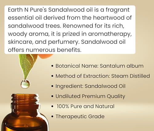 • Natural & Pure: Earth N Pure Sandalwood Oil is 100% pure and undiluted steam distilled from Santalum album