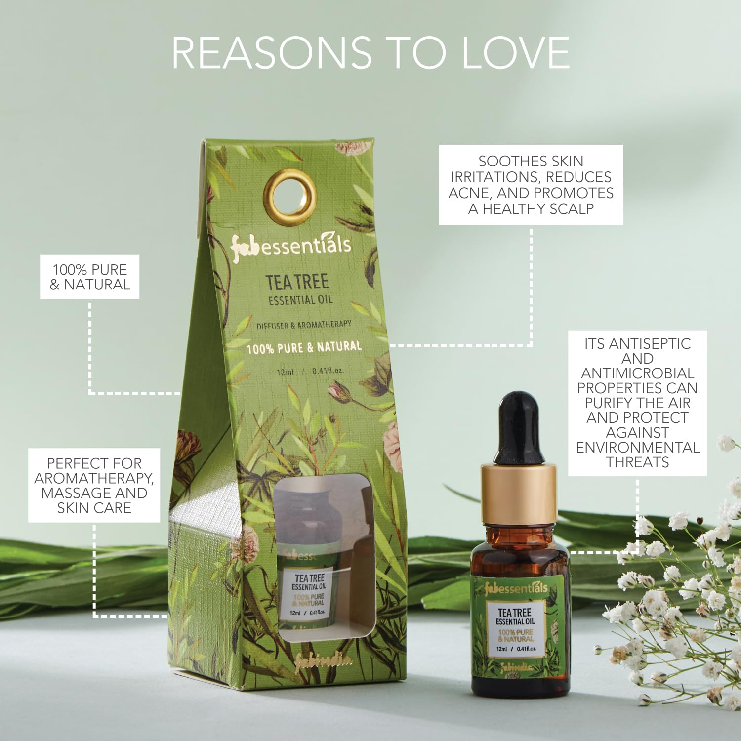 fabessentials Tea Tree Essential Oil is 100% pure & natural. Known for its purifying and cleansing properties it can help soothe skin irritations acne and promote a healthy scalp. Its fresh scent makes it an excellent choice for aromatherapy while its antiseptic and properties can purify the air and protect against environmental threats. your skin hair and well-being with Tea Tree Essential Oil.