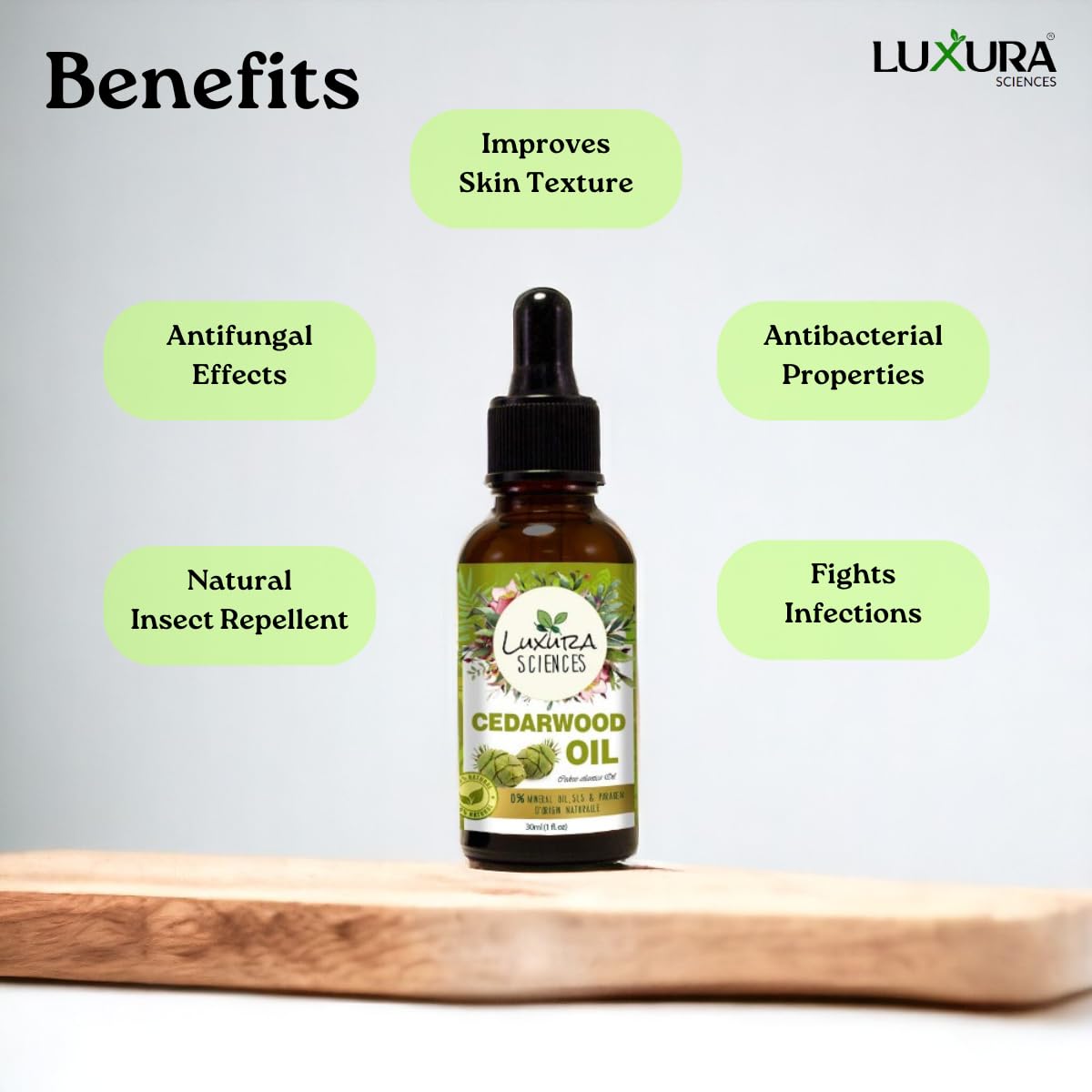 Luxura Sciences Essential oils for Hair | Skin | Nails | Aromatherapy (Cedarwood 15ml)