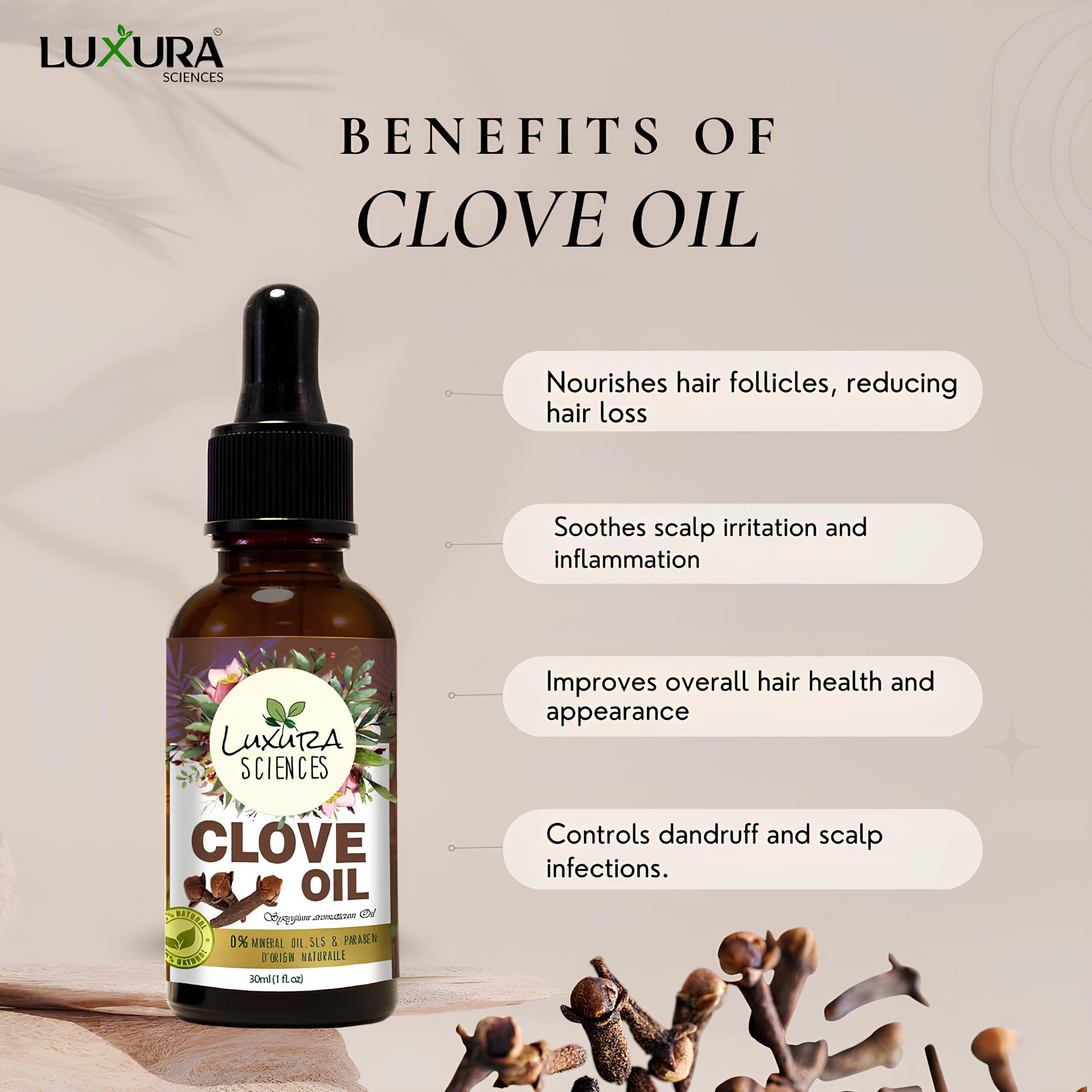 Luxura Sciences Essential oils for Hair | Skin | Nails | Aromatherapy (Clove 15ml)