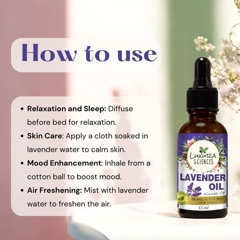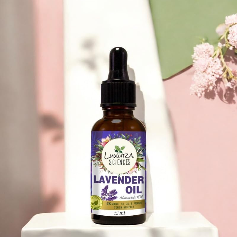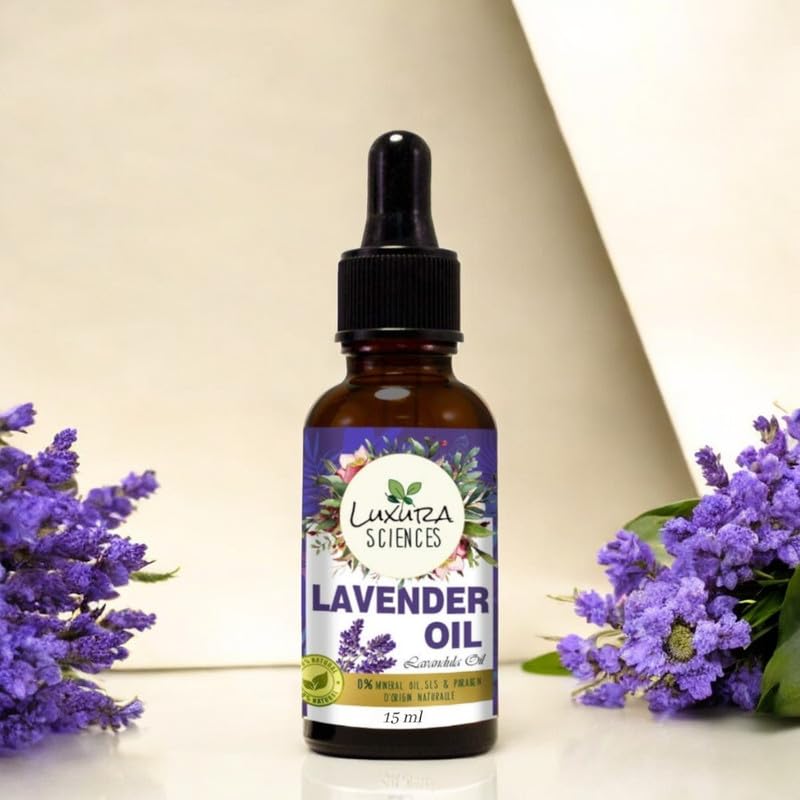 Luxura Sciences Lavender oil for hair growth skin care nail strengthening aromatherapy soothing scalp massage pure and natural therapeutic grade oil for relaxation wellness 15ml
