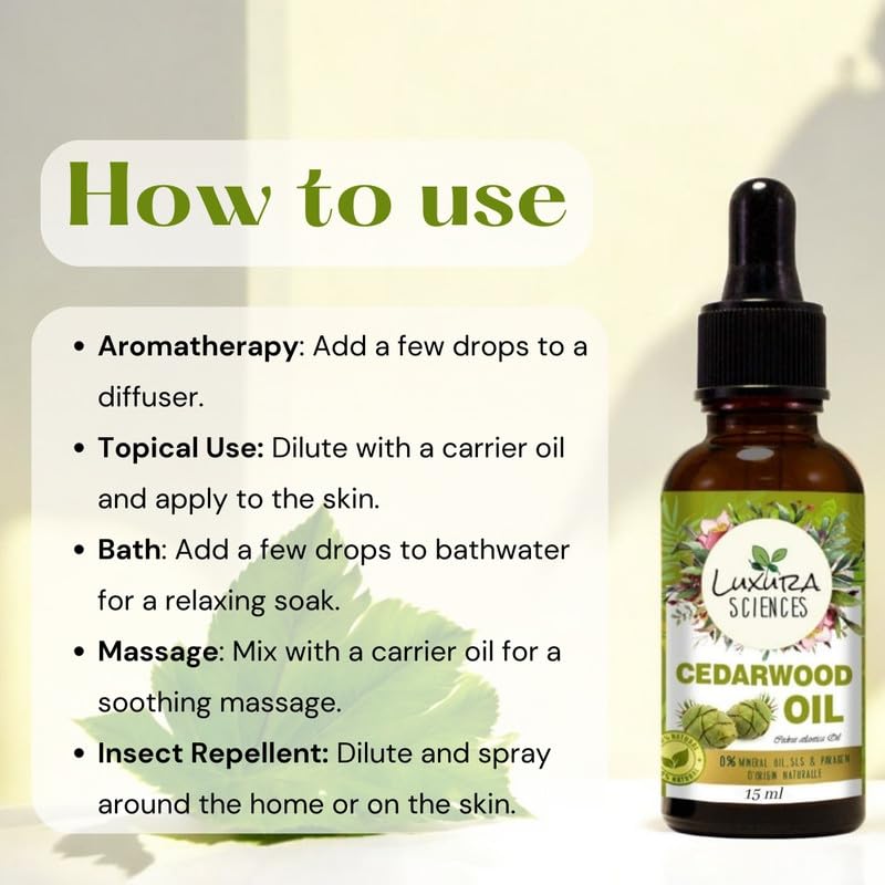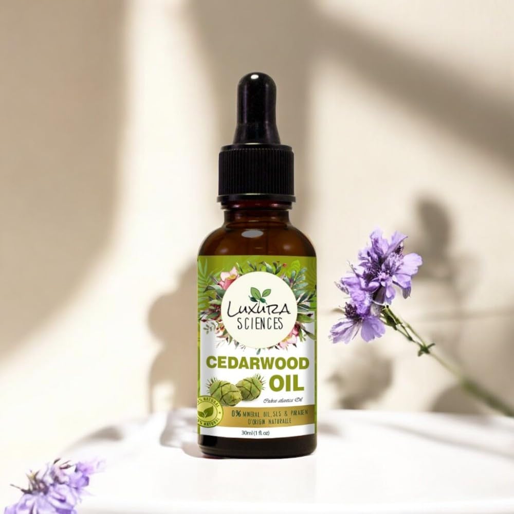 Luxura Sciences Organic Cedarwood Essential Oil (NATURAL - UNDILUTED) Therapeutic Grade - Perfect for Aromatherapy Relaxation Skin Therapy & More! (30 ML)