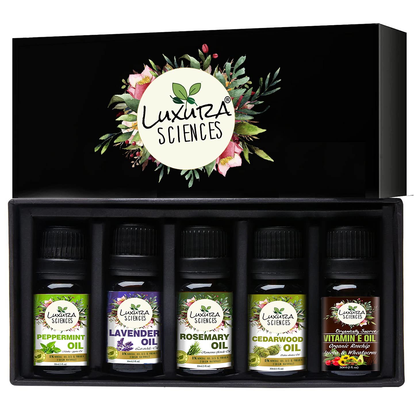 Luxura Sciences Organic Essential Oil Combo Pack of 5 Oils ANTI HAIR FALL Essential oil kit 5x15ml