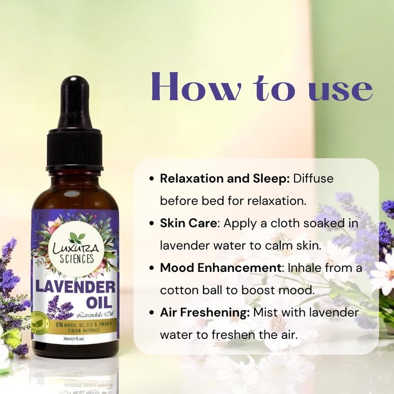 Luxura Sciences Organic Lavender Essential Oil (NATURAL - UNDILUTED) Therapeutic Grade Perfect for Aromatherapy Relaxation Skin TherapyHeadache Pain Meditation Anxiety (30 ML)