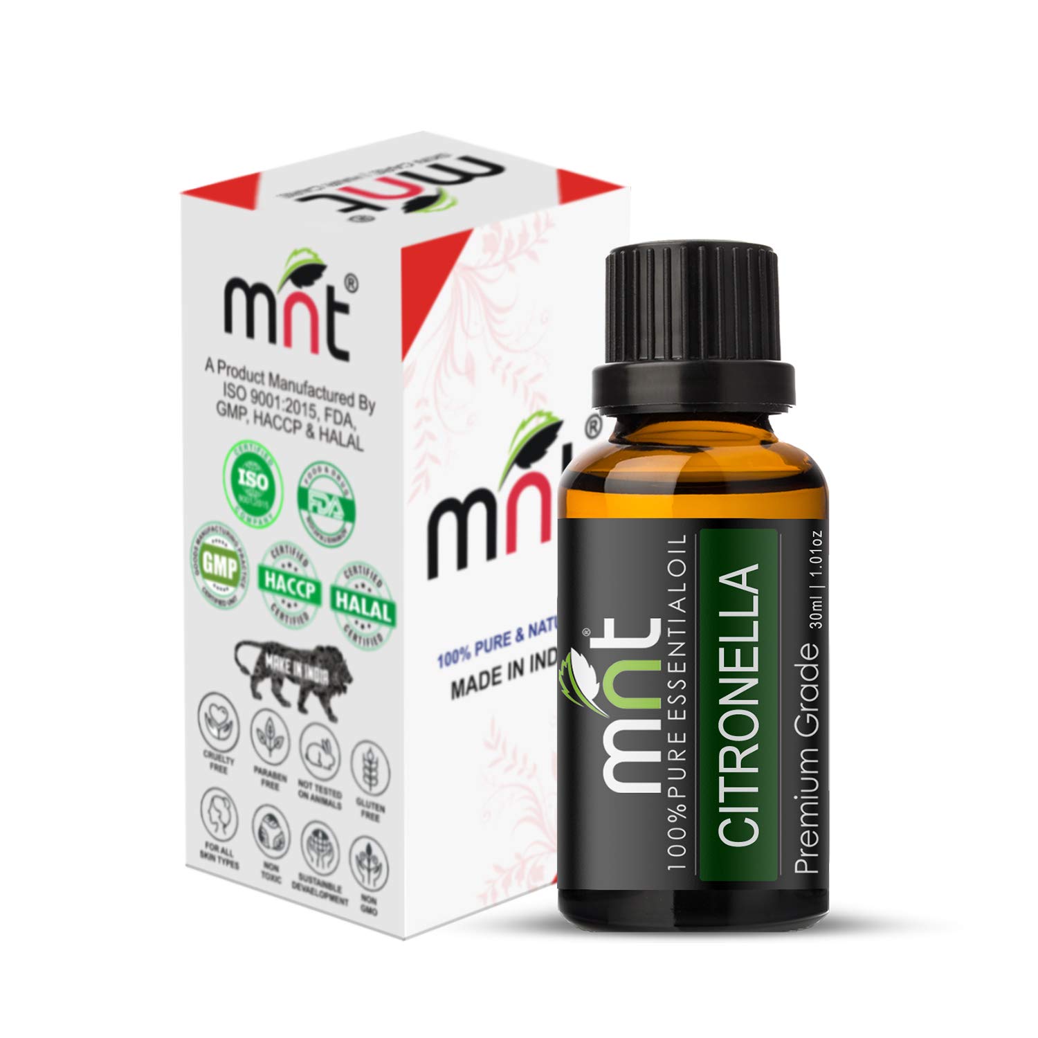 MNT Citronella Essential Oil - 100% Pure & Natural Mosquito Repellent/Therapeutic Grade Oil for Skin Hair Home Fragrance and Aromatherapy