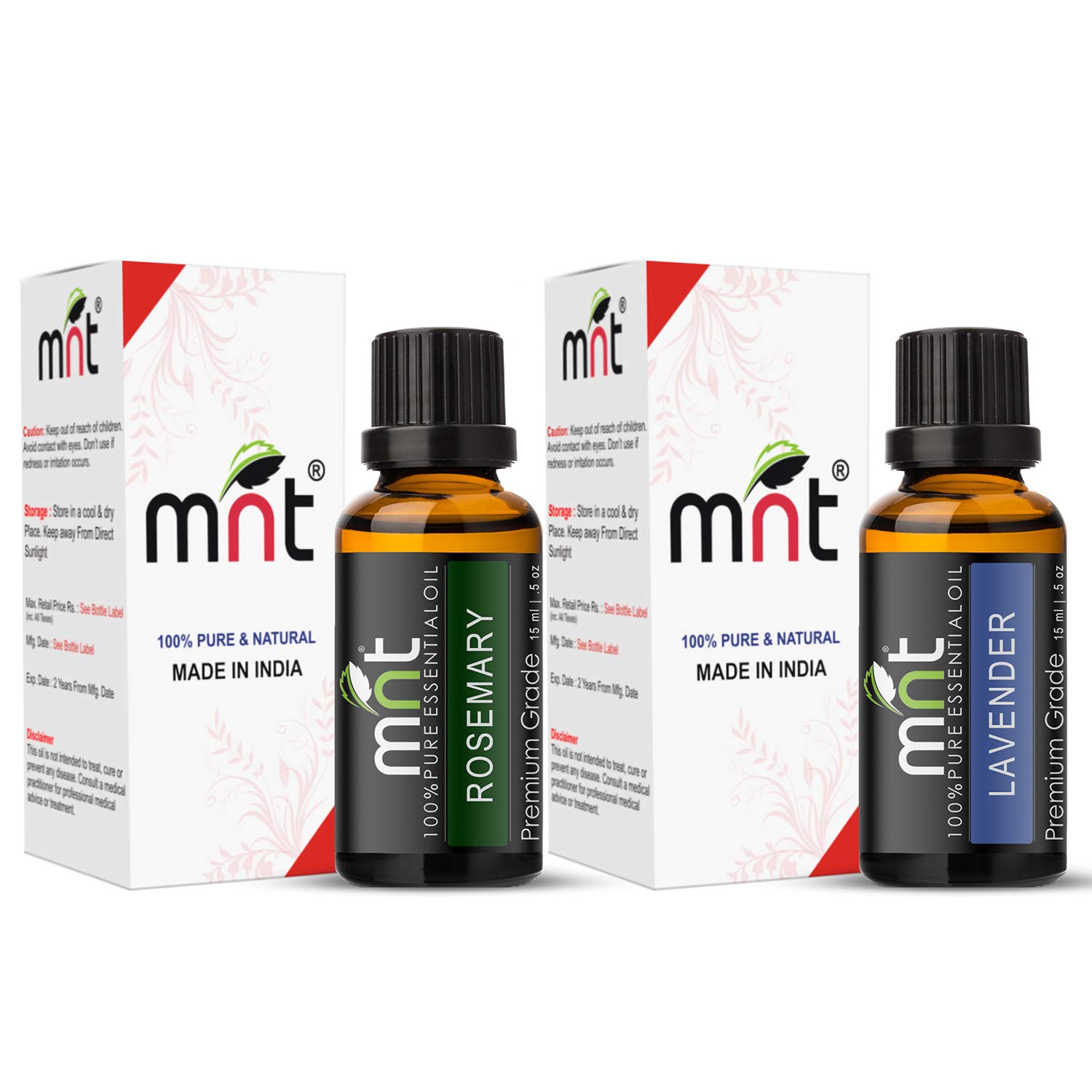 MNT Combo of Rosemary Oil and Lavender Oil - 100% Pure Essential Oil for Skin Care Hair Growth Aromatherapy Body Massage & Relaxation 15 ml Each