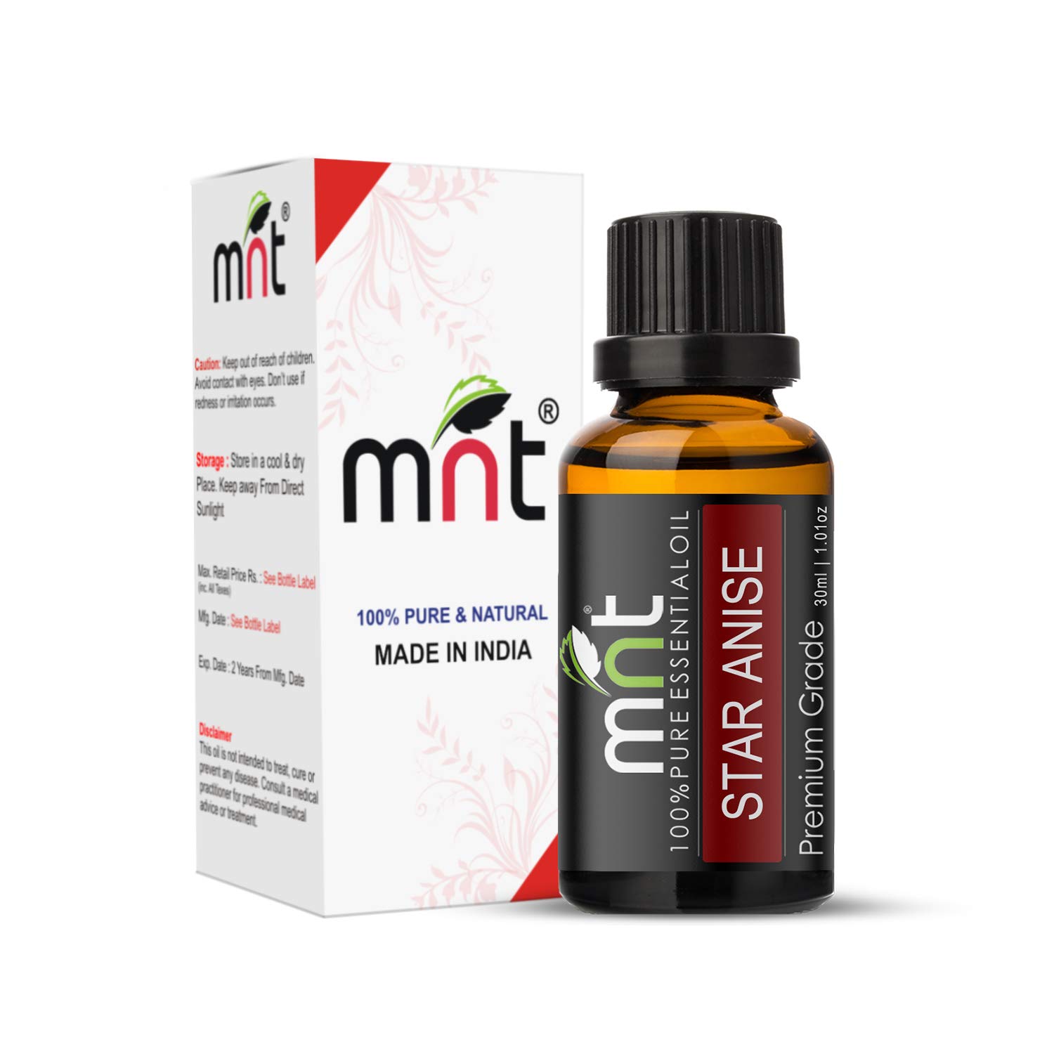 MNT Star Anise Essential Oil 100% Pure Natural & Undiluted Therapeutic Grade oil for Skin Body Massage Pain Relief and Aromatherapy (30ML)