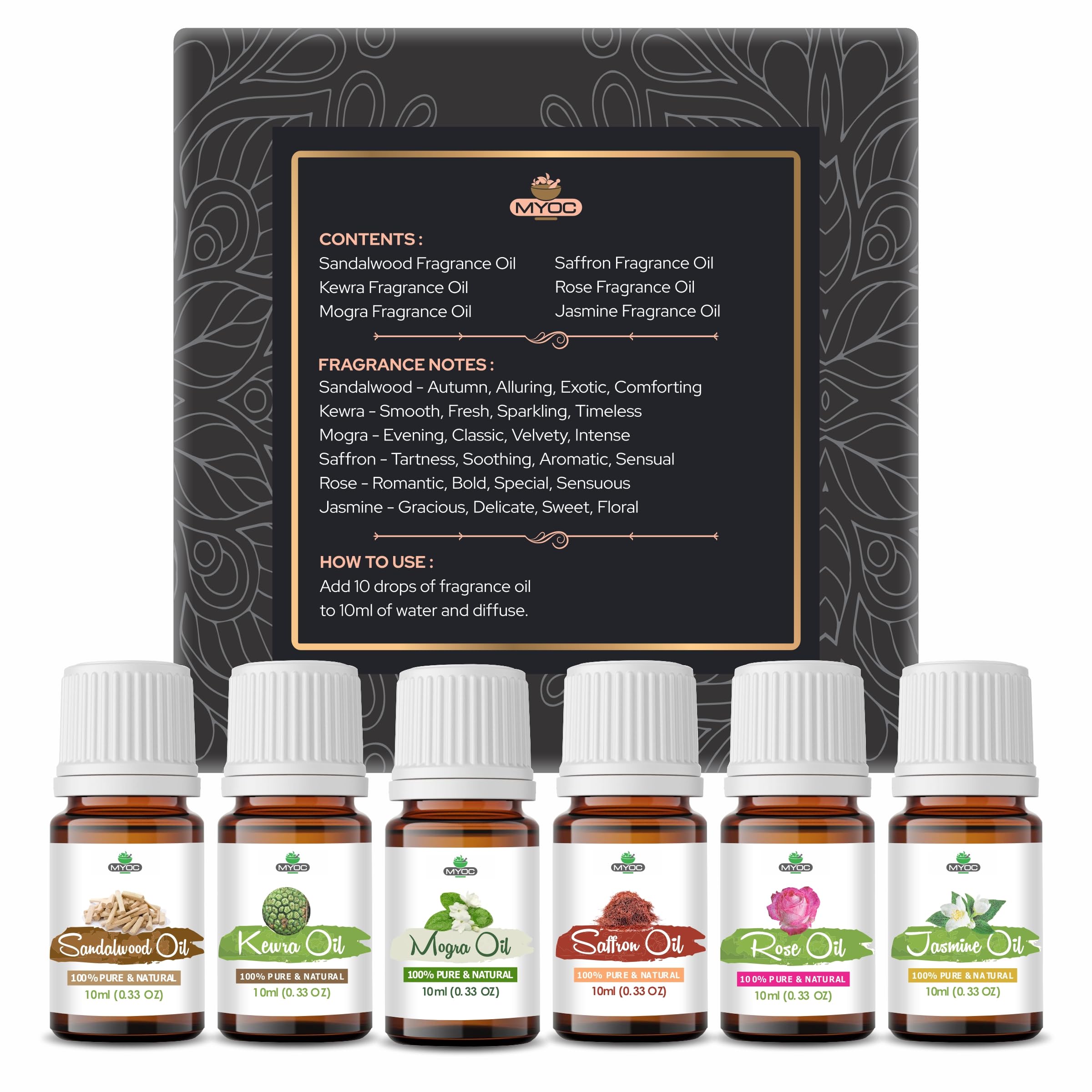 MYOC Enchanting Gift set of essential oils for Aroma Candle making Soap making Bath Bombs | 10ml Pack of 6