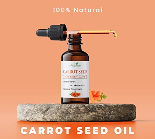 100% Pure Natural & Undiluted Natupure Carrot Seed Carrier Oil For Skin Care & Hair . Applications for carrot seed oil include facial moisturiser skin care hair care aromatherapy swelling vaporizers and body ification. Carrot seed oil is produced by steam distilling the dried seeds of wild carrot. The colour of this oil ranges from light orange-brown to amber. It combines beautifully with all citrus and spicy oils. The oil smells woodsy earthy sweet pungent dry and earthy.