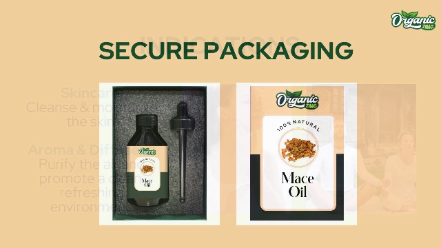 EXTRACTION METHOD: Mace oil is extracted from the steam distillation method of the fruit of Myristica fragrans.