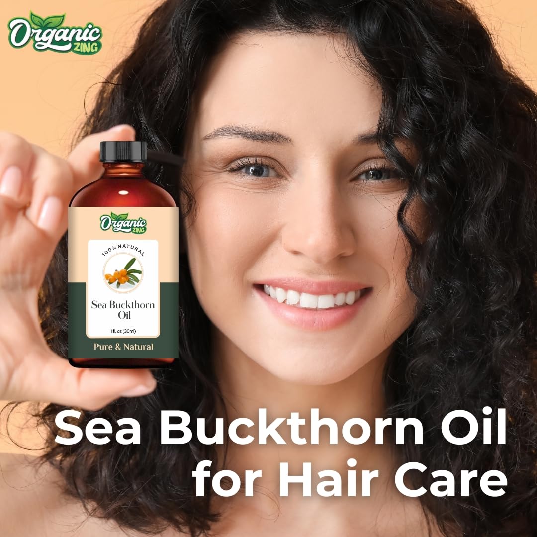 Organic Zing Sea Buckthorn (Hippophae Rhamnoides L) Oil | Pure & Natural Essential Oil for Skincare & Haircare- 30ml/1.01fl oz