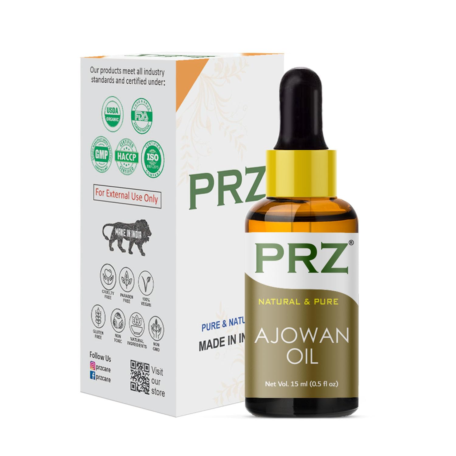 PRZ Ajwain Essential Oil - Pure Natural & Therapeutic Grade Oil for Skin Care & Hair Care 15 ml