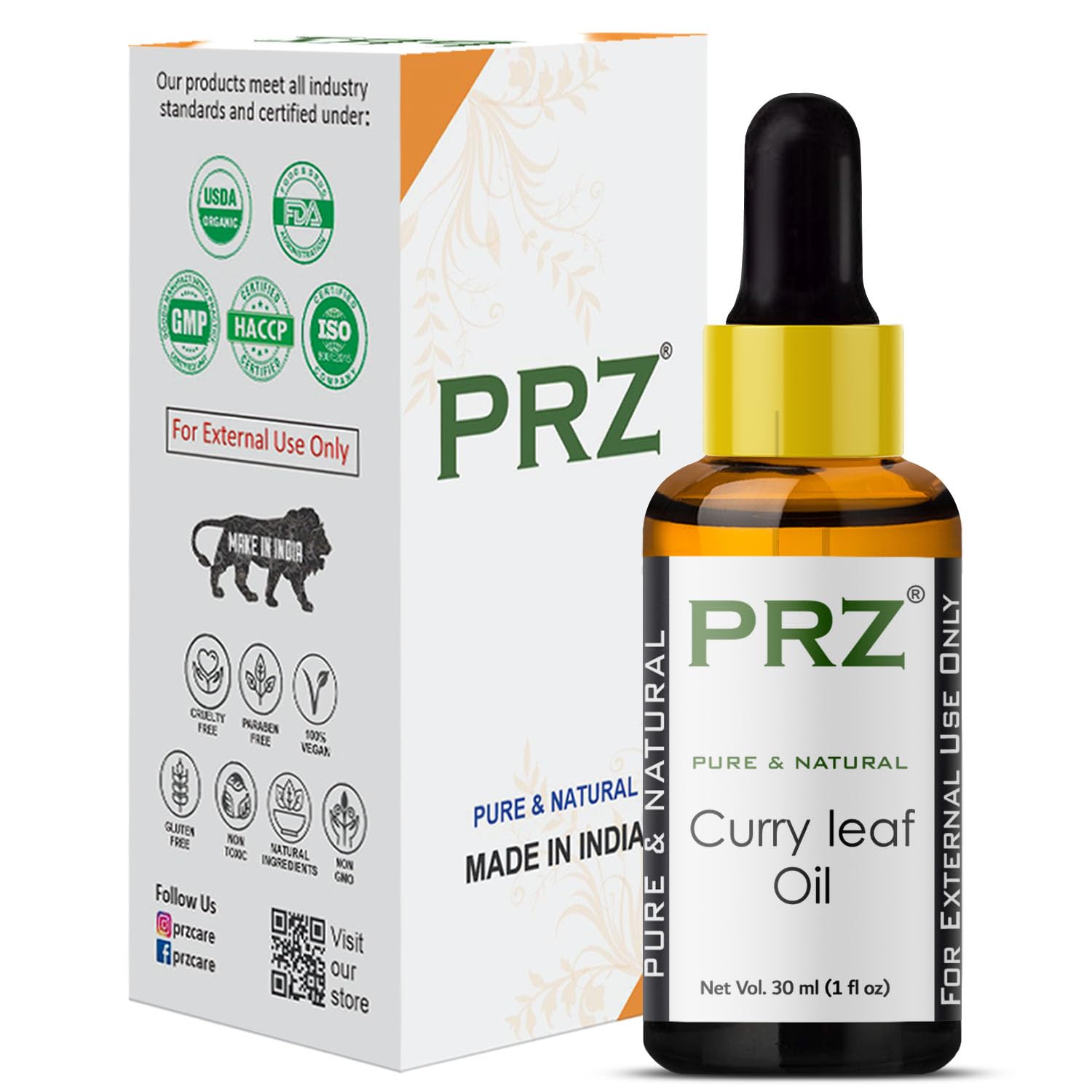PRZ Curry Leaf Essential Oil (30ML) - Pure Natural & Therapeutic Grade Oil For Aromatherapy Skin Care & Hair Care