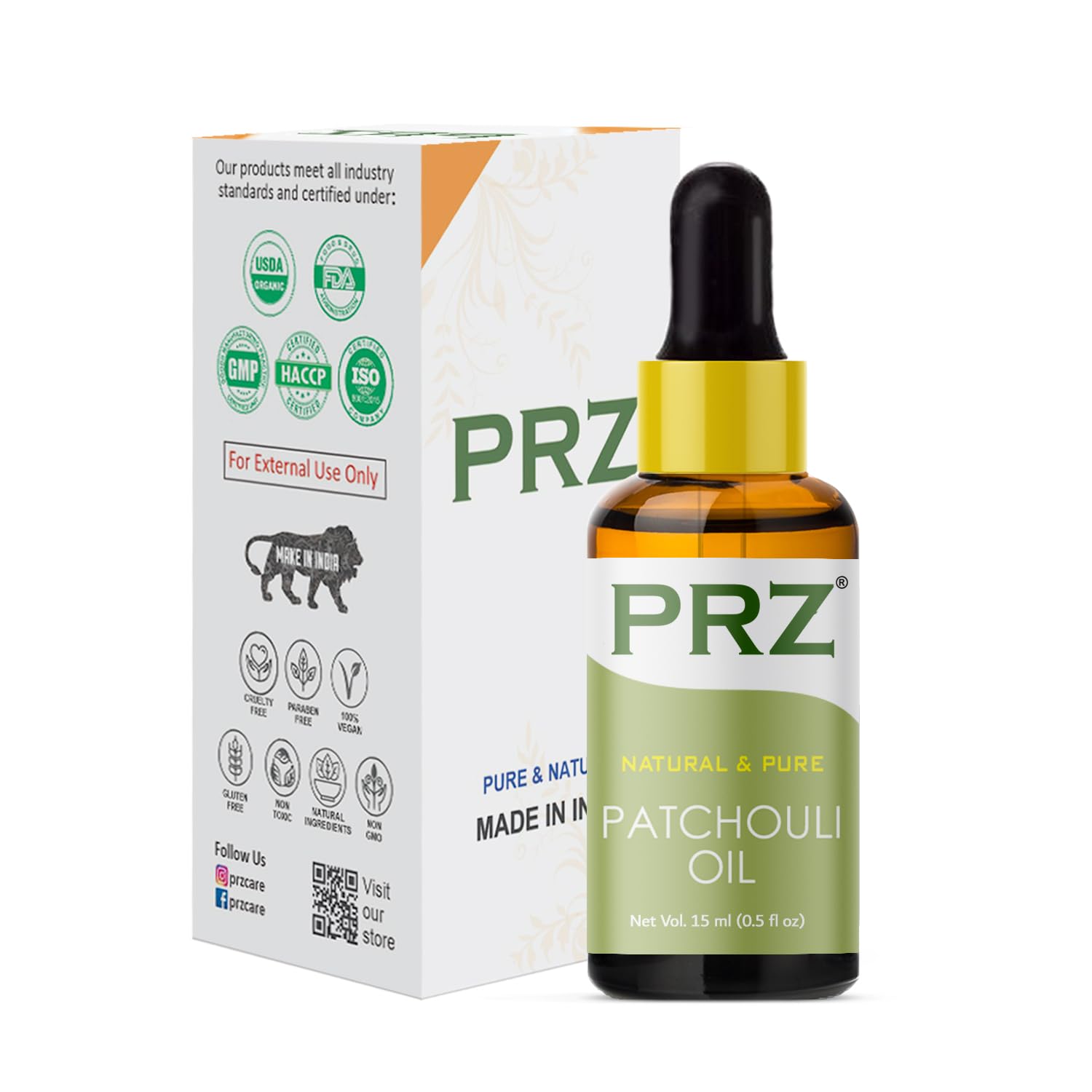 PRZ Patchouli Essential Oil - Pure Natural & Therapeutic Grade Oil for Aromatherapy Skin Care & Hair Care 15 ml