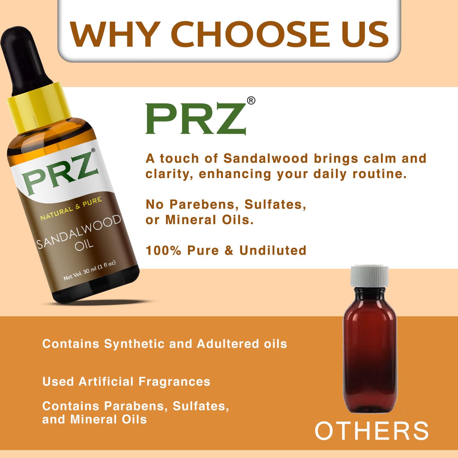PRZ Sandalwood Essential Oil is extracted exclusively from sandalwood wood chips using a meticulous process ensuring each drop is free from additives or synthetic substances. Perfect for creating bespoke natural perfumes and suitable for professional aromatherapy and massage therapies.
