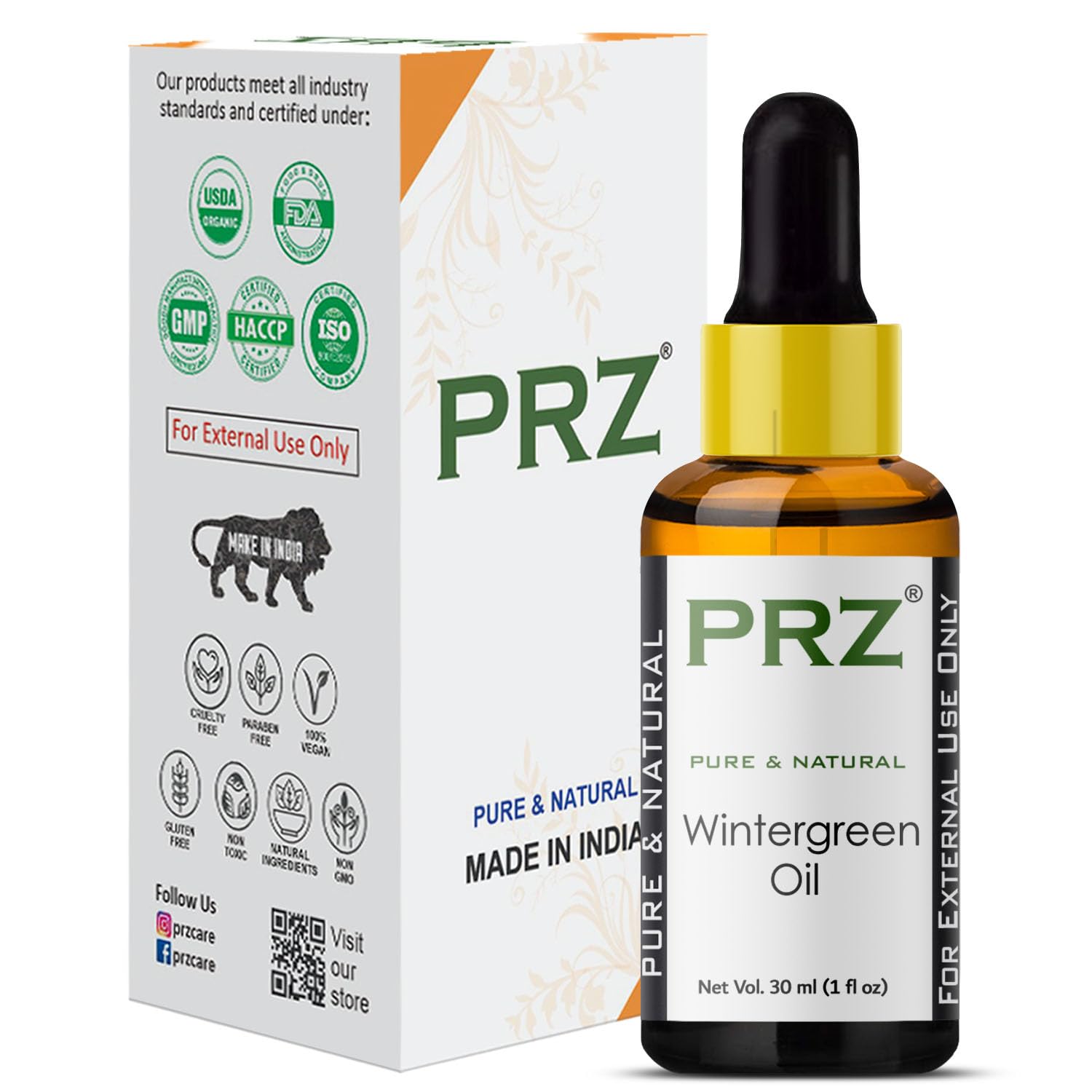 PRZ Wintergreen Essential Oil - Pure Natural & Therapeutic Grade Oil for Skin Care & Hair Care 30 ml