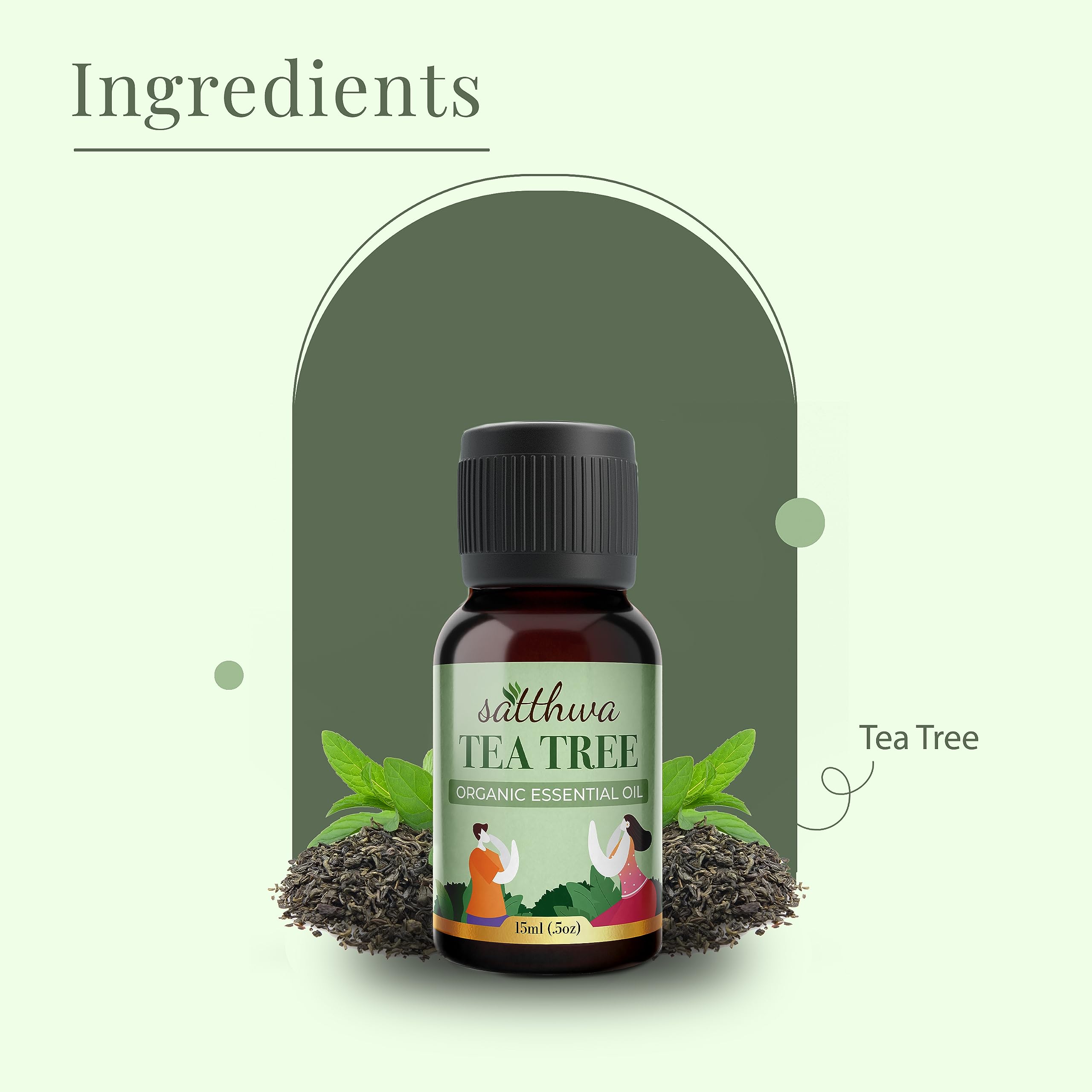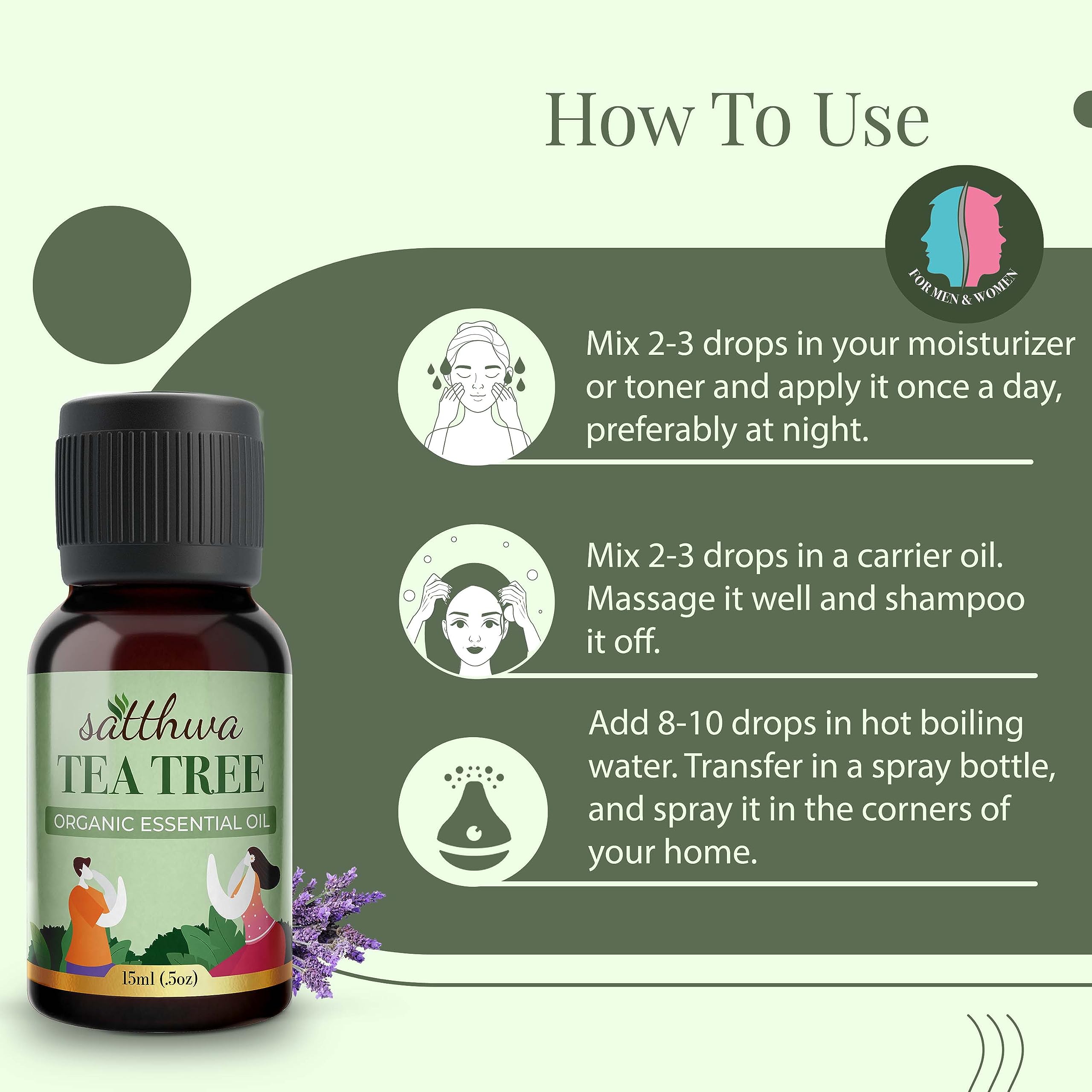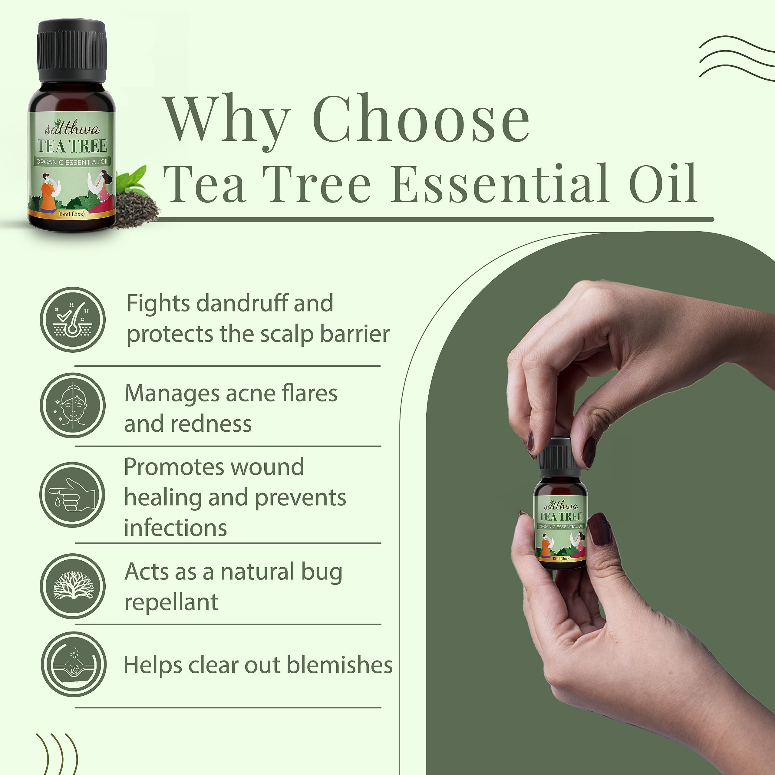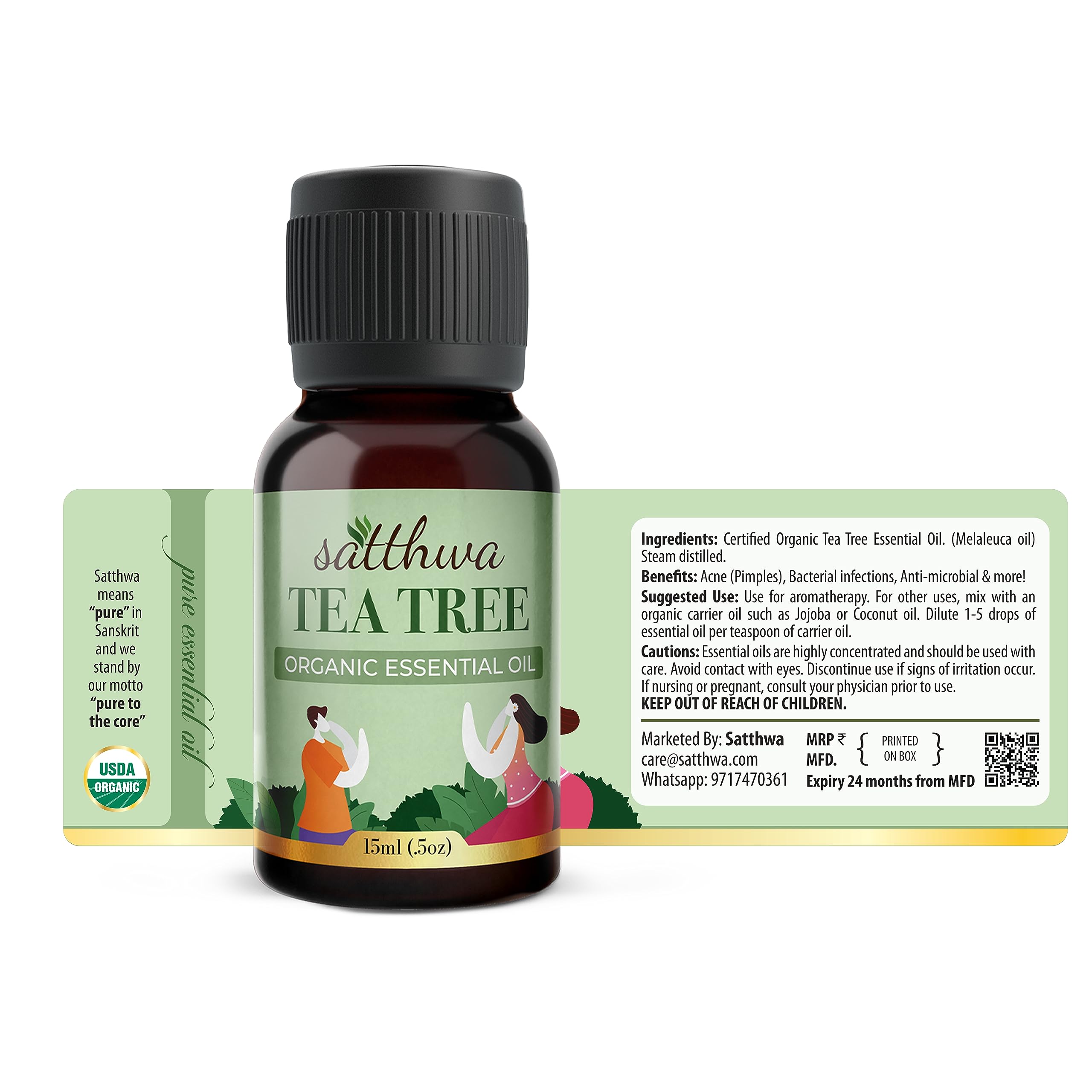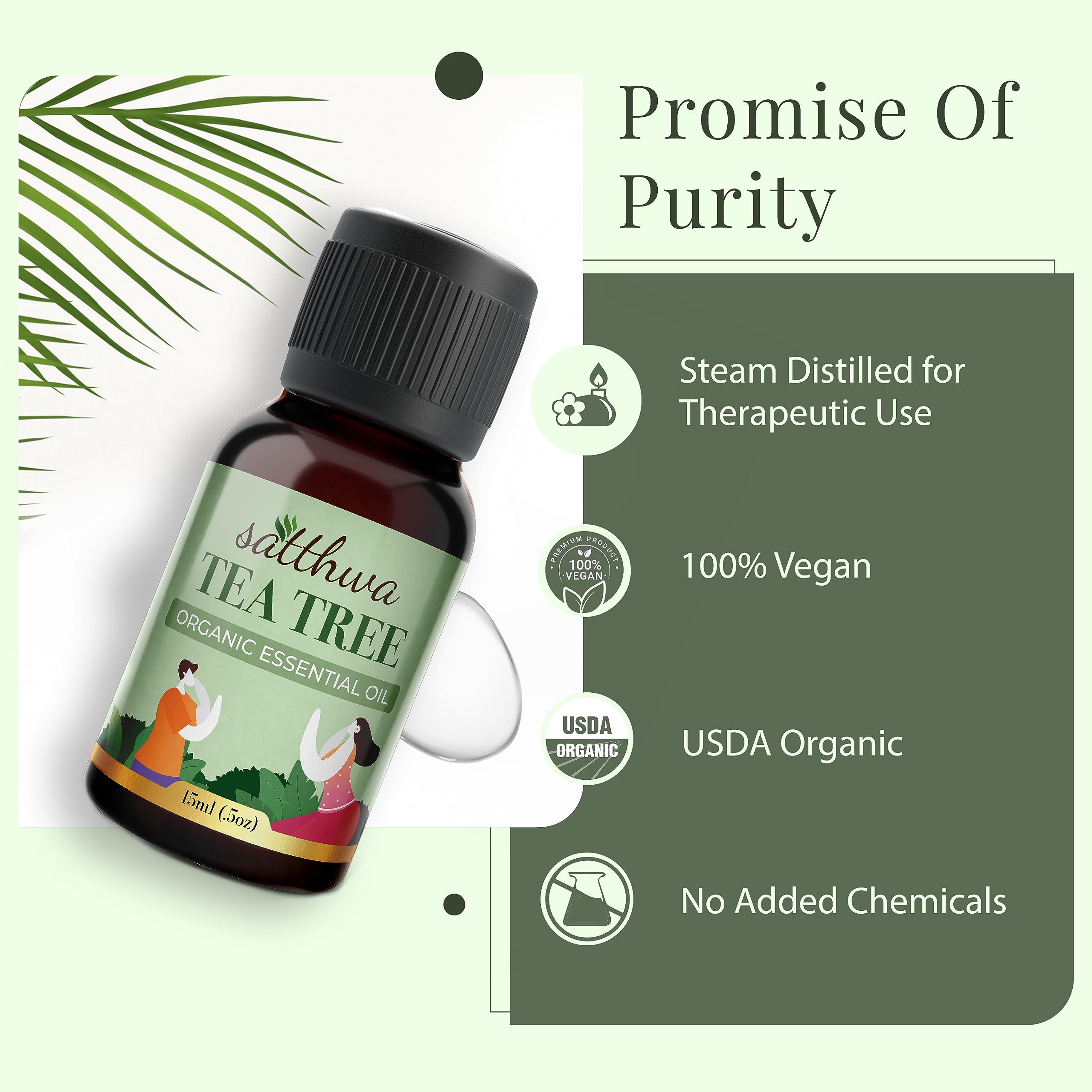 Satthwa Organic Tea Tree Essential Oil - Therapeutic Grade - 15ml - Cleansing and Purifying Supports Healthy Skin Hair and Nails