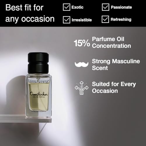 HomeHealth & PersonalAroma ProductsEssential OilsSoulflower Overthinker EAU De Parfum for Men | Premium Luxury Fresh Woody Long Lasting Strong Fragrance Perfume with 15% Essential Oils | Gift for Men | 35ml