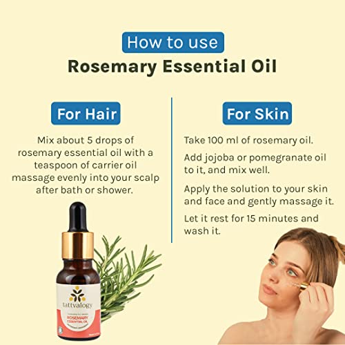 Tattvalogy Organic Rosemary Essential Oil for Hair 15ml| Hair Strengthening Treatment | Nourishing & Volumizing | Treatment for Dry, Damaged Hair, Split Ends Hair for All Hair Types