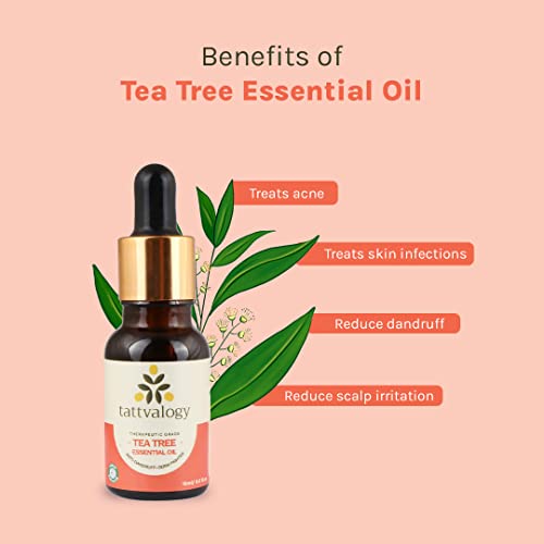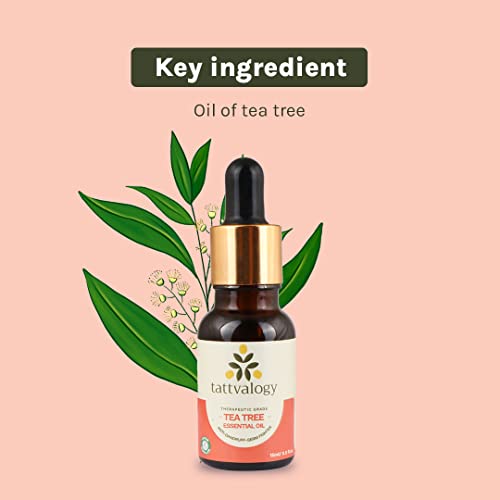 Tattvalogy Tea Tree Essential Oil | Helps Reduce Dark Spots & Acne Scars| 100% Pure & Undiluted Skin & Hair Care Oil for Dandruff, Pimples, Aromatherapy, Stress Relief | In Glass Bottle - 15 ML