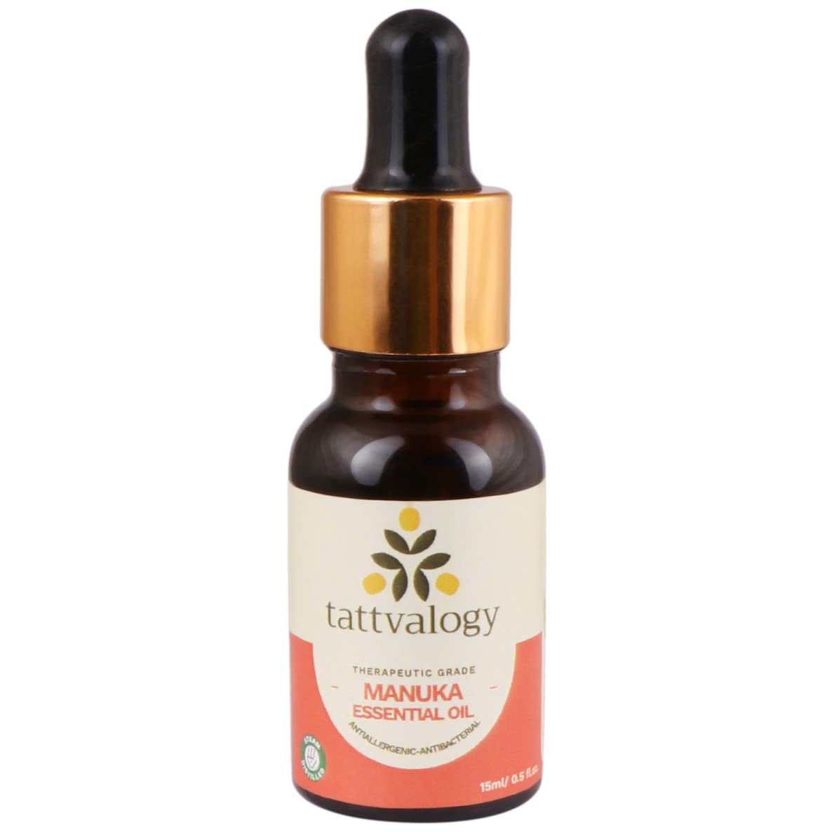Tattvalogy Therapeutic Grade Manuka Essential Oil | Leptospermum scoparium | Antiallergenic & Antibacterial | Reduces Blemishes and Breakouts | Treats Damaged Skin Cells | In Glass Bottle - 15 ML