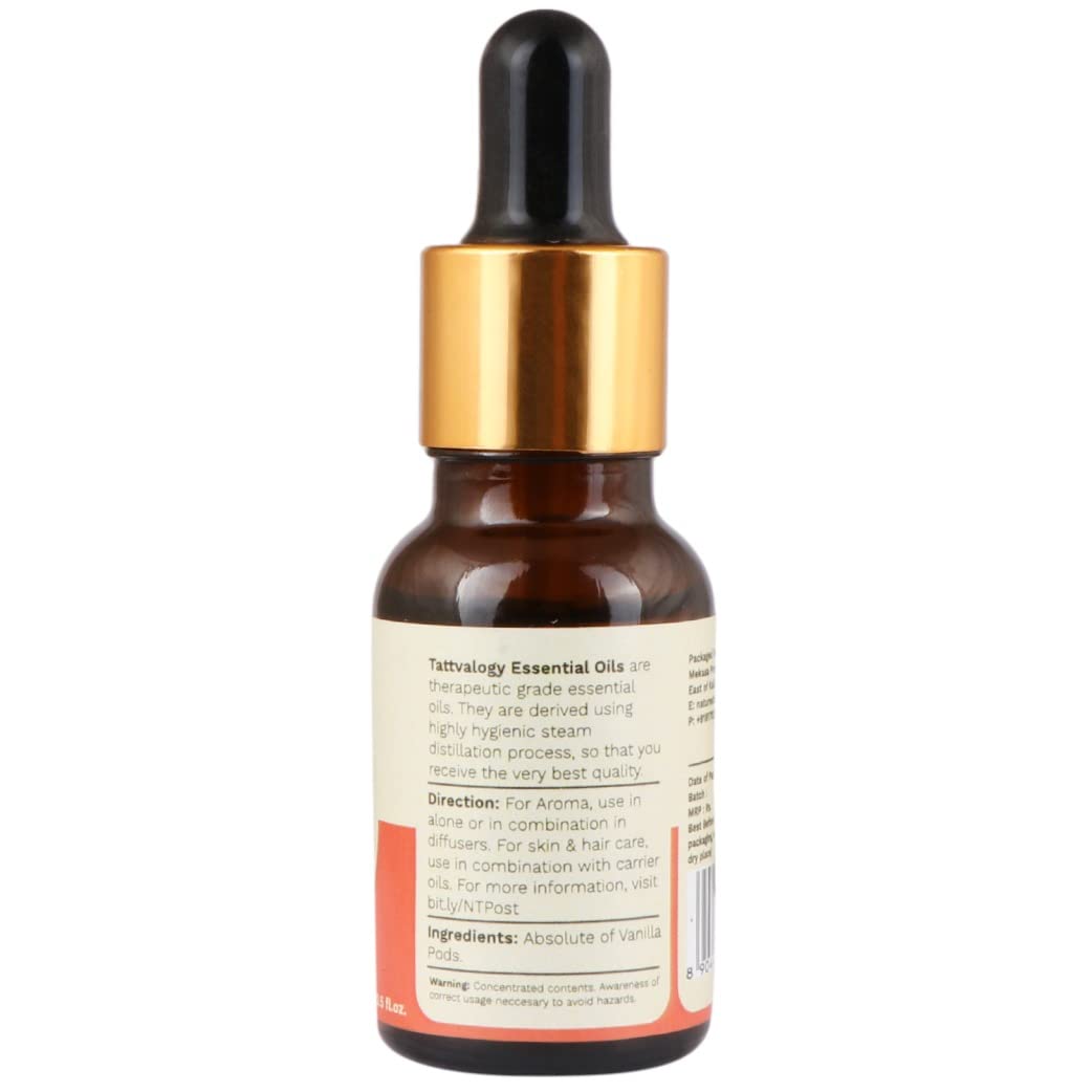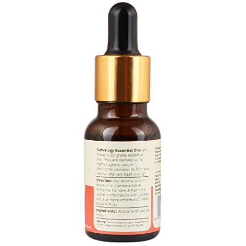 Tattvalogy Vanilla Absolute Essential Oil | Vanilla Planifolias | 100% Pure and Natural | Induces Sleep | Suitable for Aroma Diffuser | For Skin, Hair and Fragrance | In Glass Bottle - 15 ML