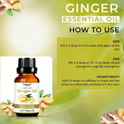 Tegut Ginger Essential Oil - Pure Natural & Undiluted For Skin care & Hair 10ml (Pack of 2)