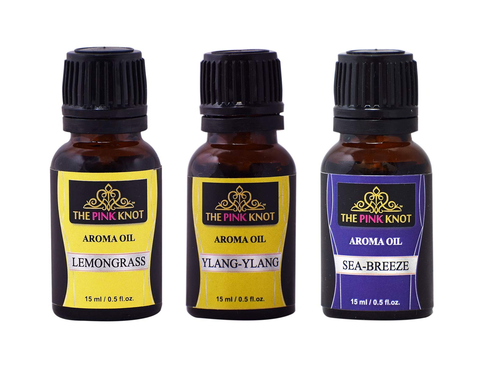 The Pink Knot Lemongrass Ylang-Ylang & Sea Breeze set of three aromatic fragrant diffuser oil (15ml each)