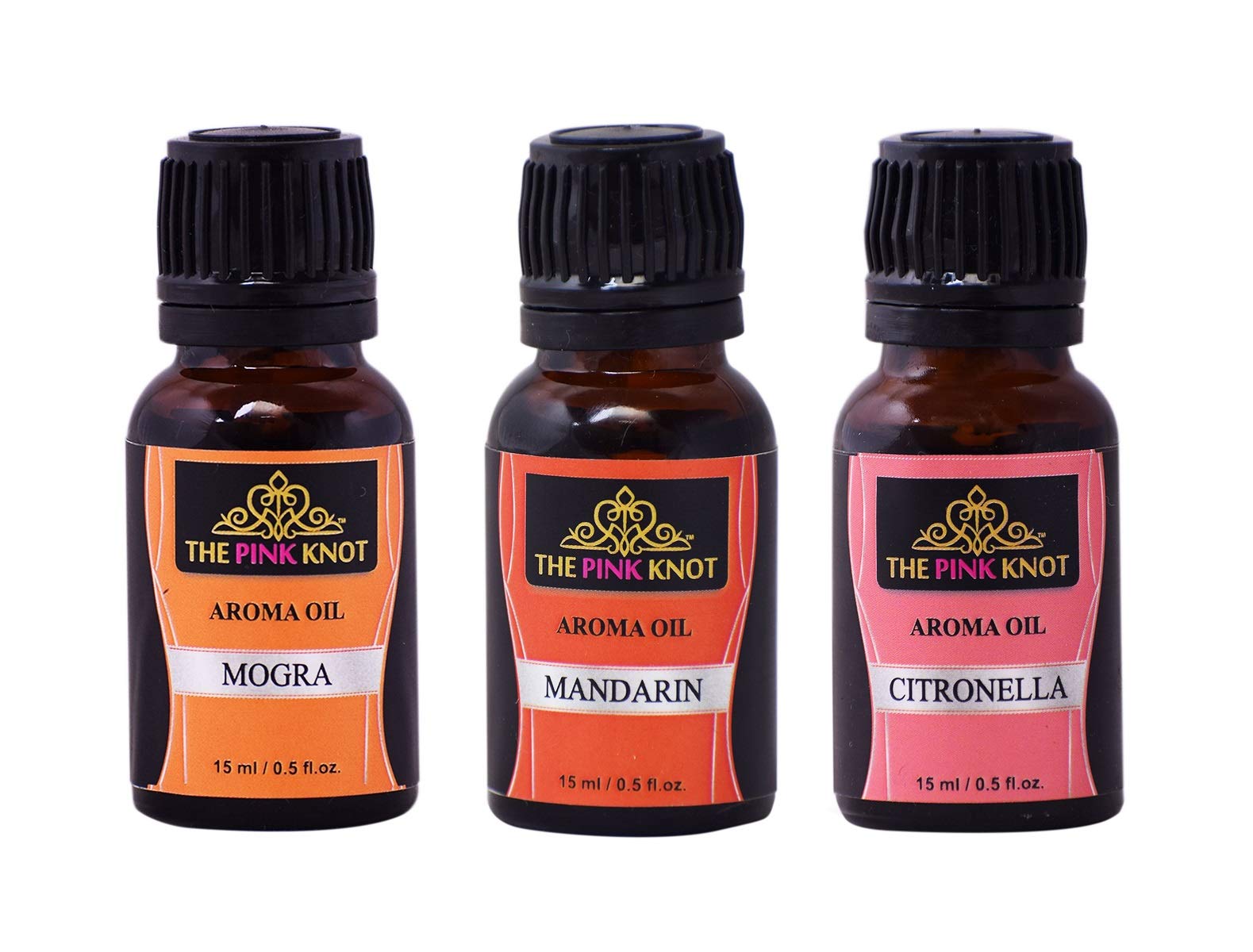 The Pink Knot Mogra Mandarin & Citronella set of three aromatic fragrant diffuser oil(15ml each)