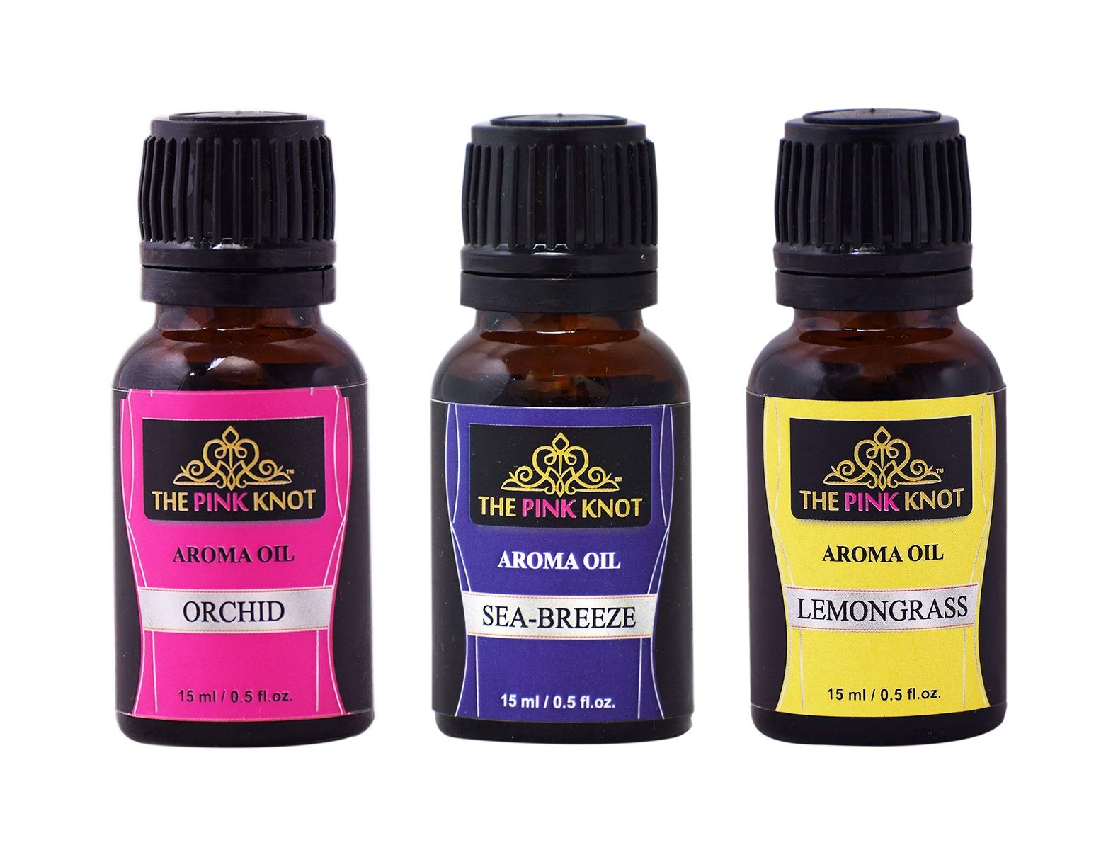 The Pink Knot Orchids Sea Breeze & Lemongrass set of three aromatic fragrant diffuser oil (15ml each)