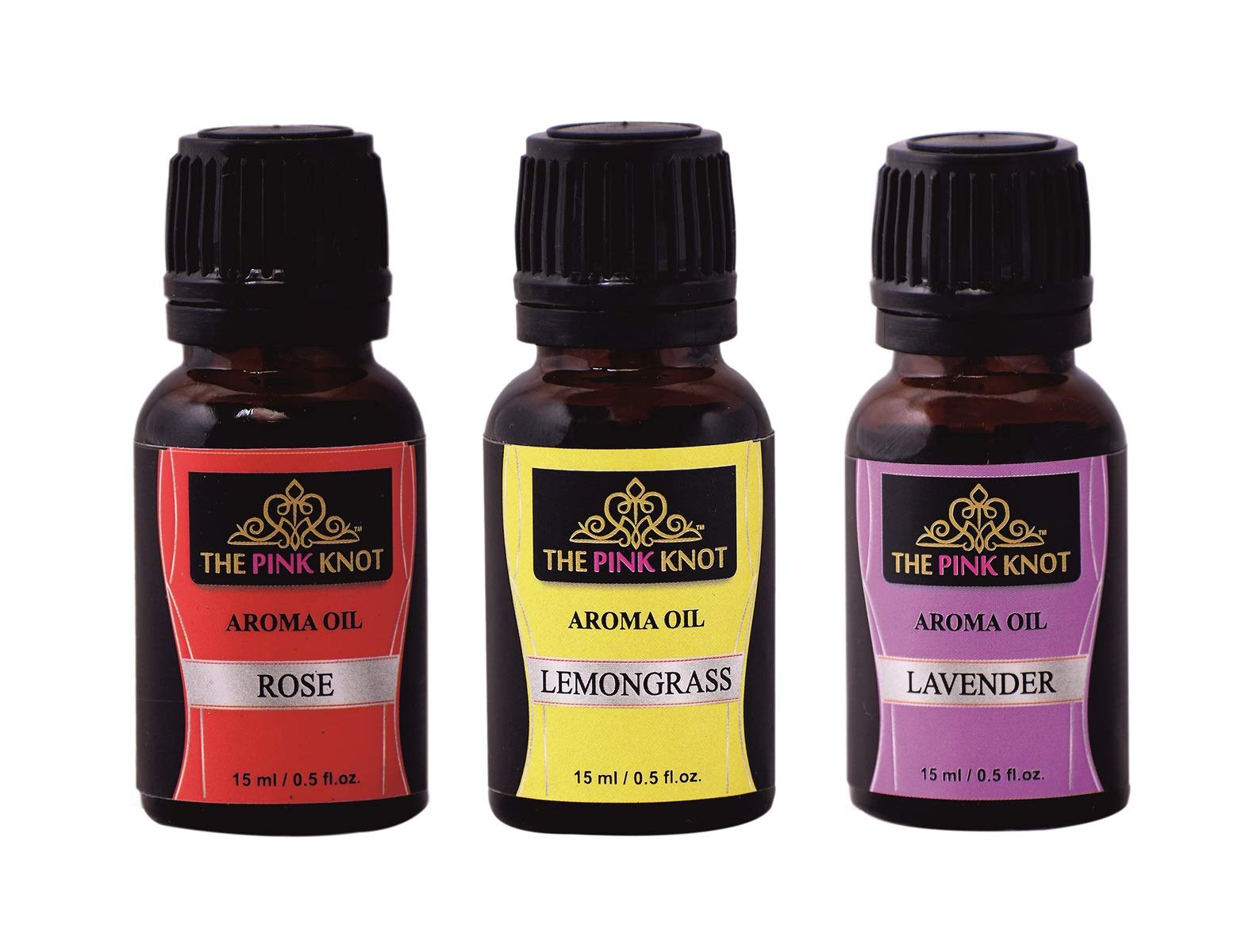 THE PINK KNOT Rose Lemongrass & Lavender set of three aromatic fragrant diffuser oil (15ml each)