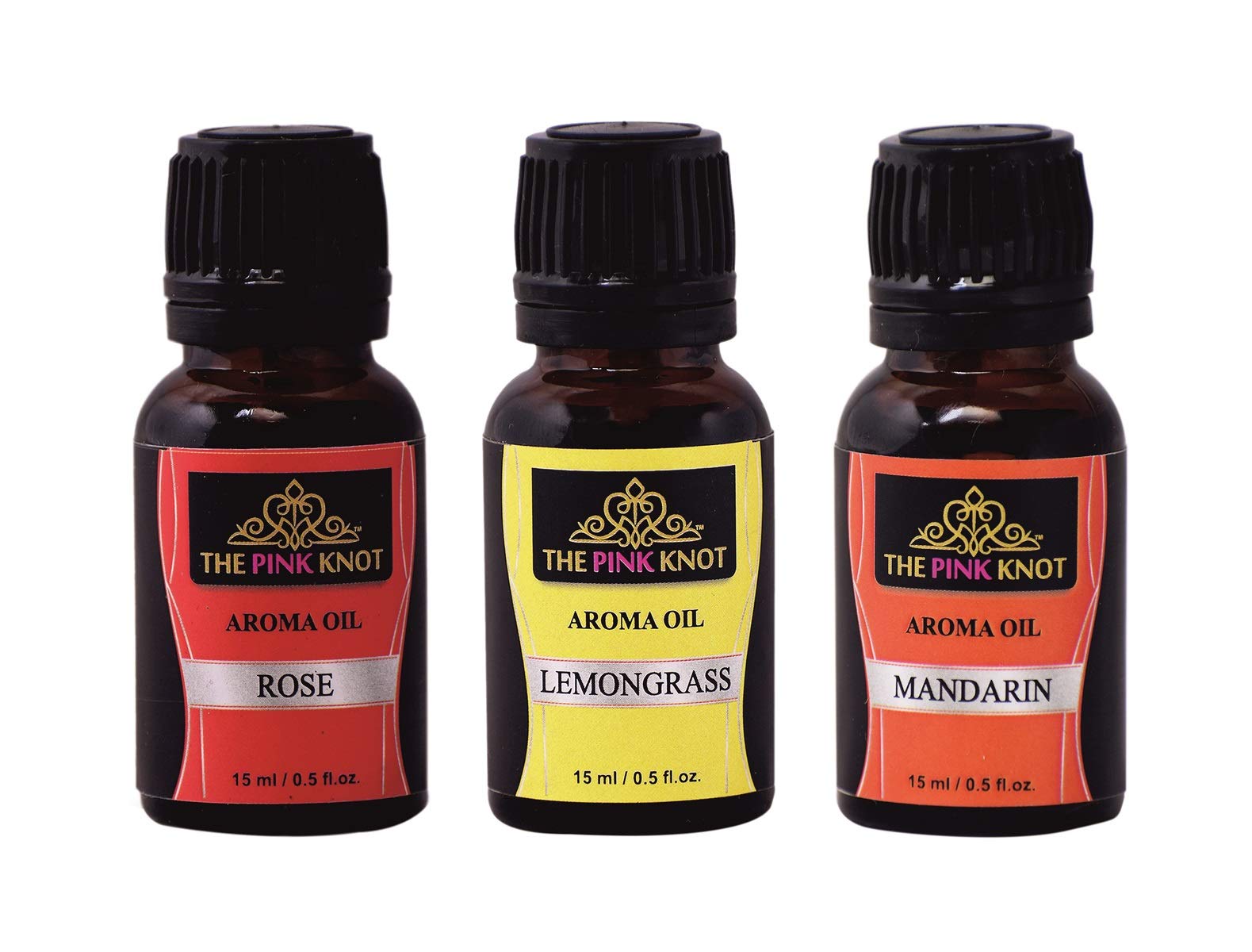 THE PINK KNOT Rose Lemongrass & Mandarin set of three aromatic fragrant diffuser oil by (15ml each)