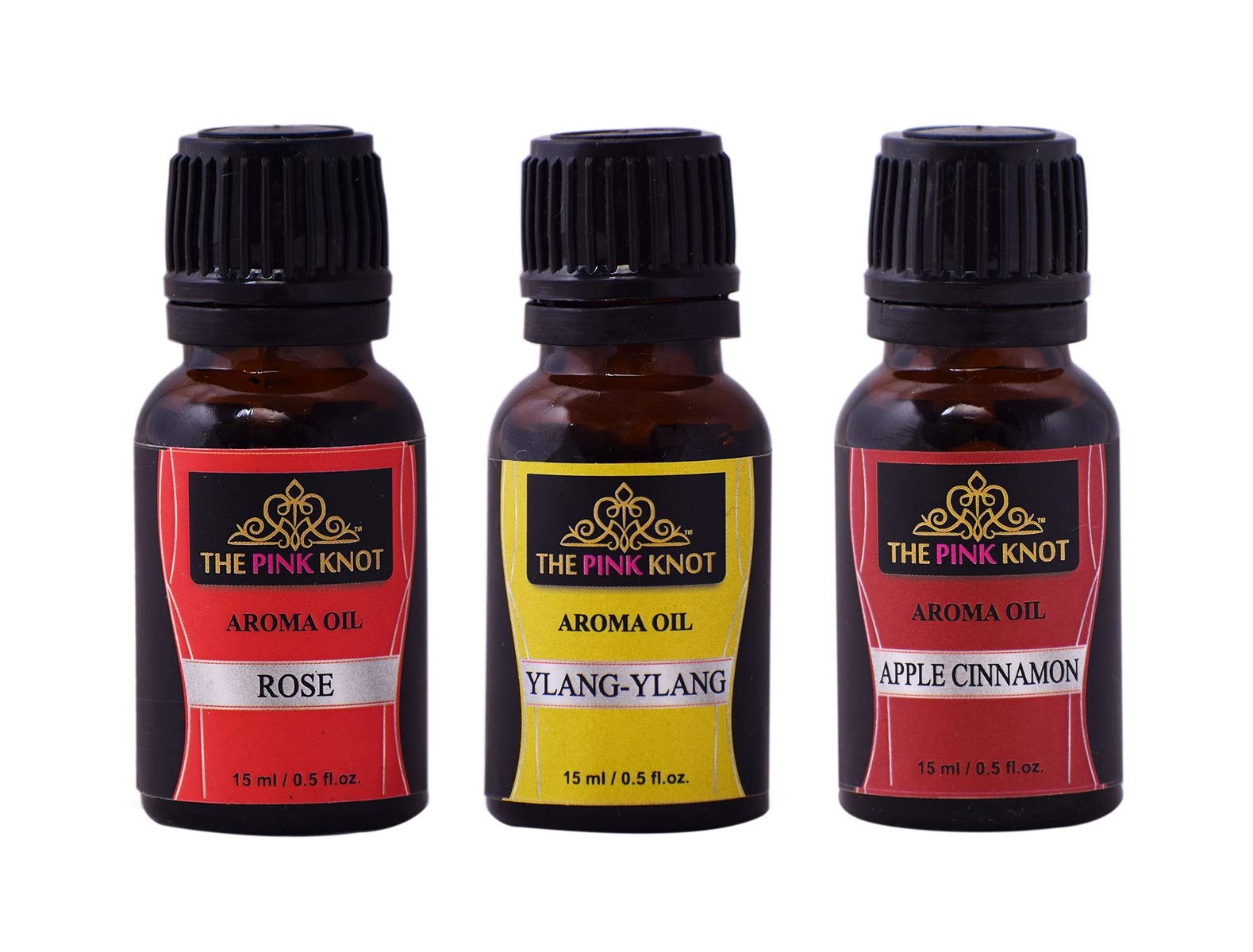 The Pink Knot Rose Ylang-Ylang & Apple Cinnamon set of three aromatic fragrant diffuser oil (15ml each)