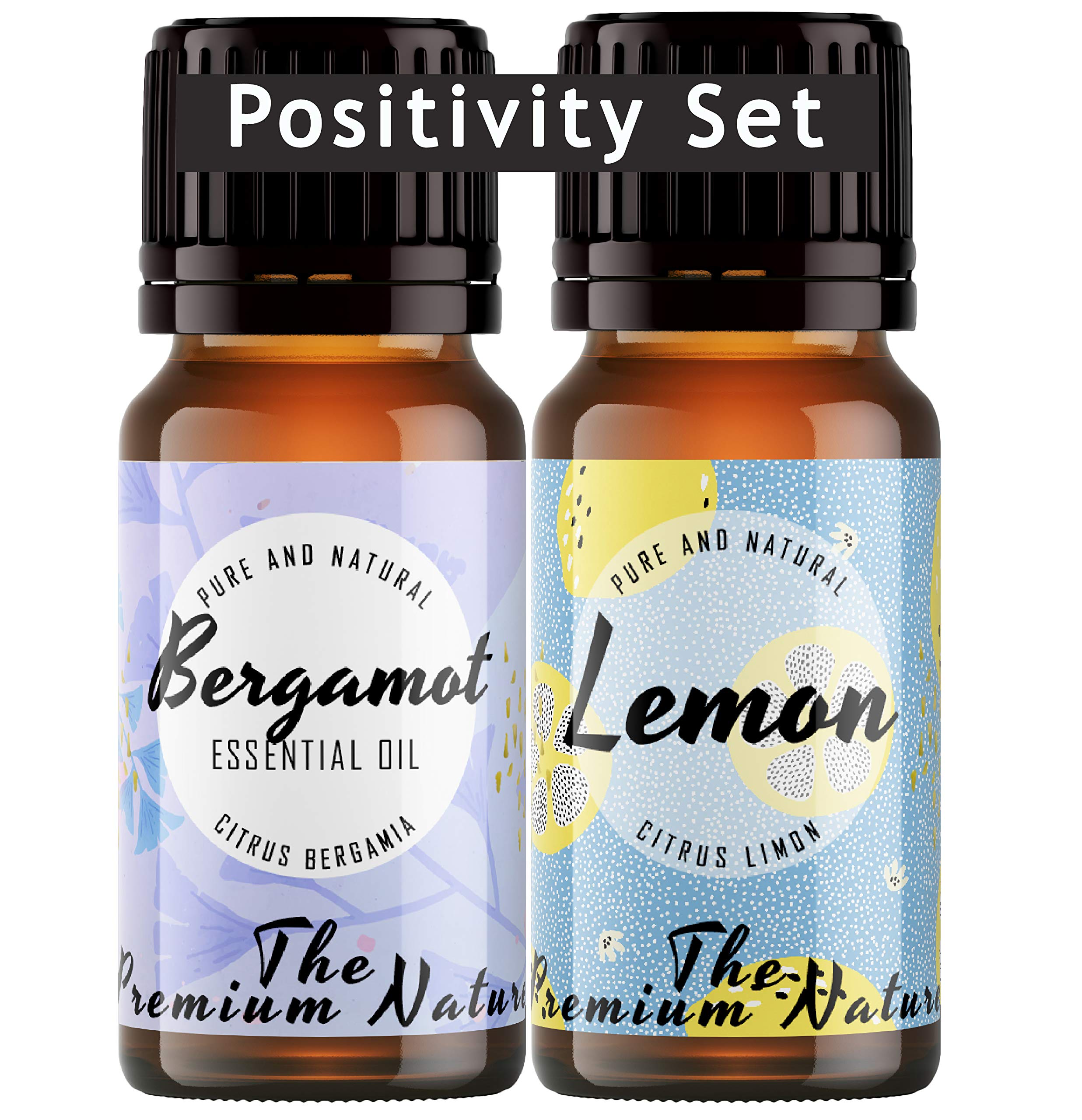 The Premium Nature Bergamot Oil & Lemon Essential Oil - Positivity Set for Beautiful Skin & Great Mood - 100% Pure Therapeutic Grade Essential Oils Set - 2x10ml