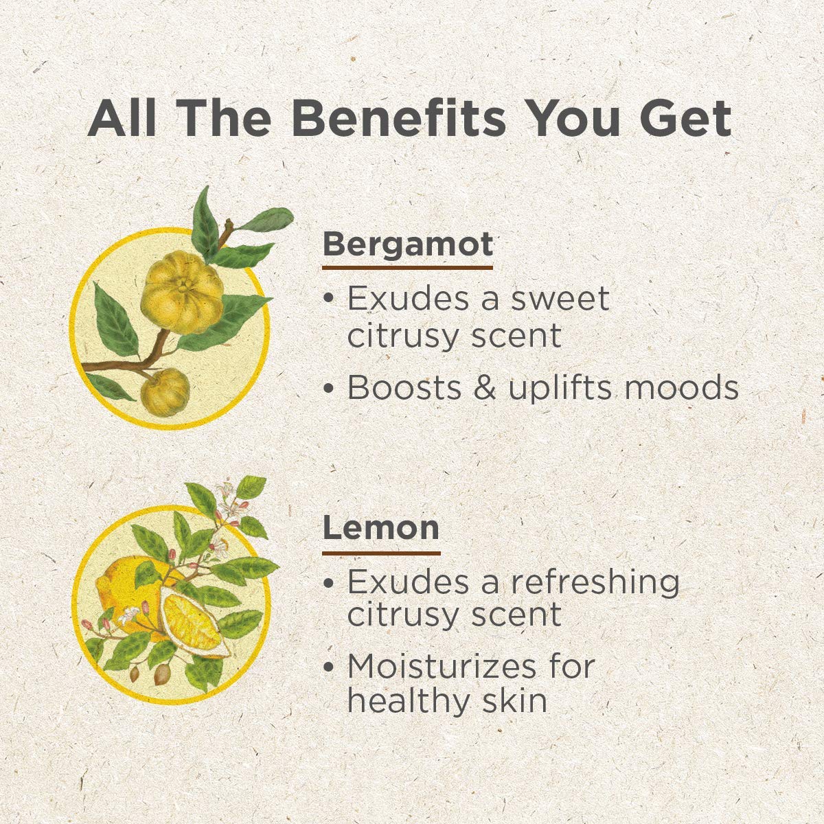• MAKE EVERY DAY COUNT - Maintain a cheerful spirit using bergamot essential oils & lemon oil. Let it clear your complexion and uplift your days to make them brighter & better.