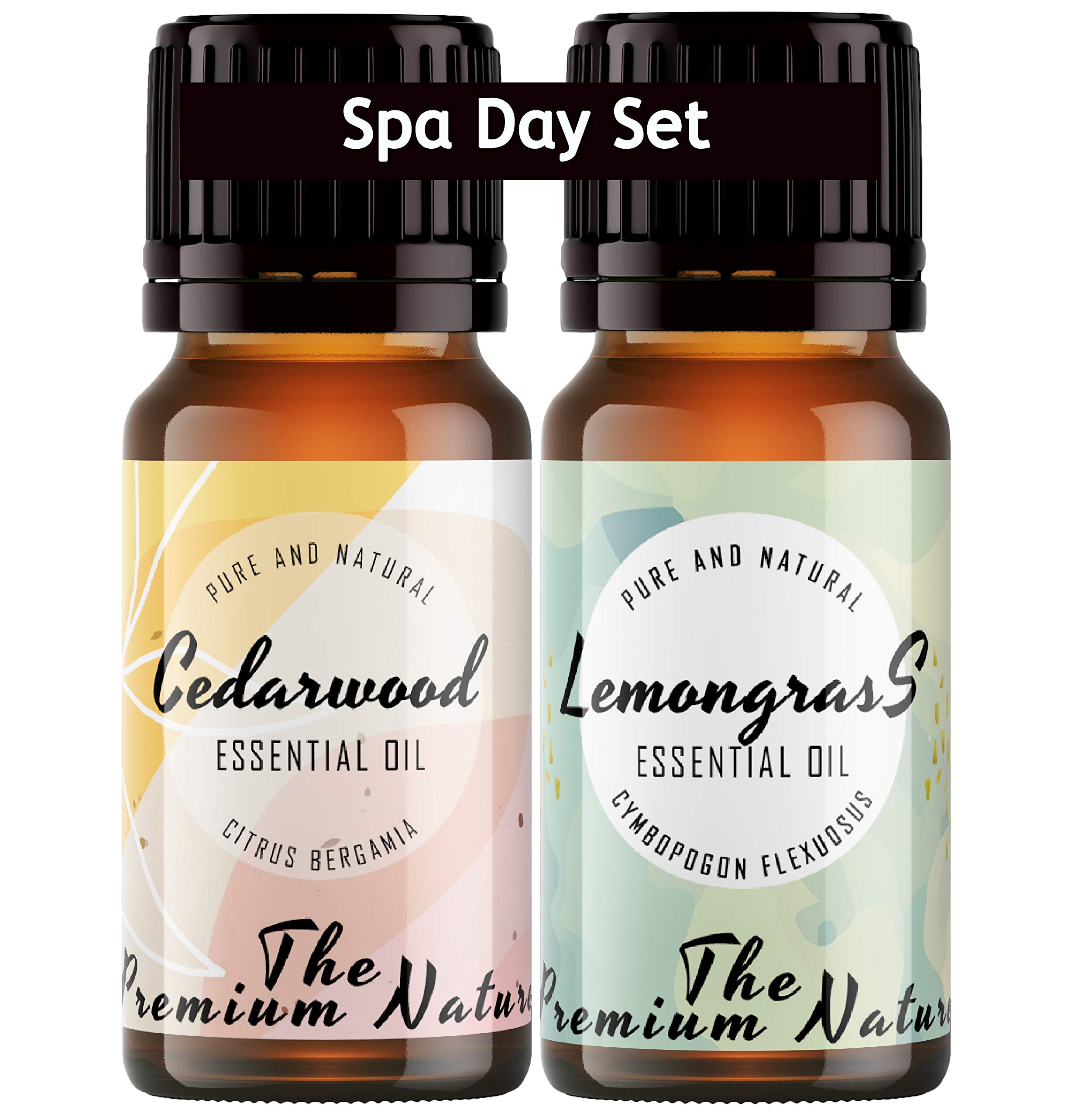 The Premium Nature Cedarwood & Lemongrass Oil - Spa Day Set to Soothe Muscles & Clear Skin Irritation - 100% Pure Therapeutic Grade Essential Oils Set - 2x10ml