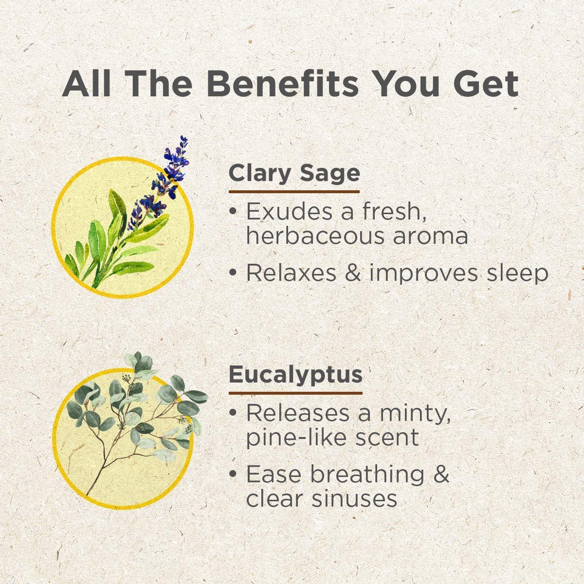 • Natural Ingredients - Our essential oils clary sage from Southern France and essential oils eucalyptus are gently steam-distilled to produce the purest form of sage essential oil for diffuser and essential oil eucalyptus.
