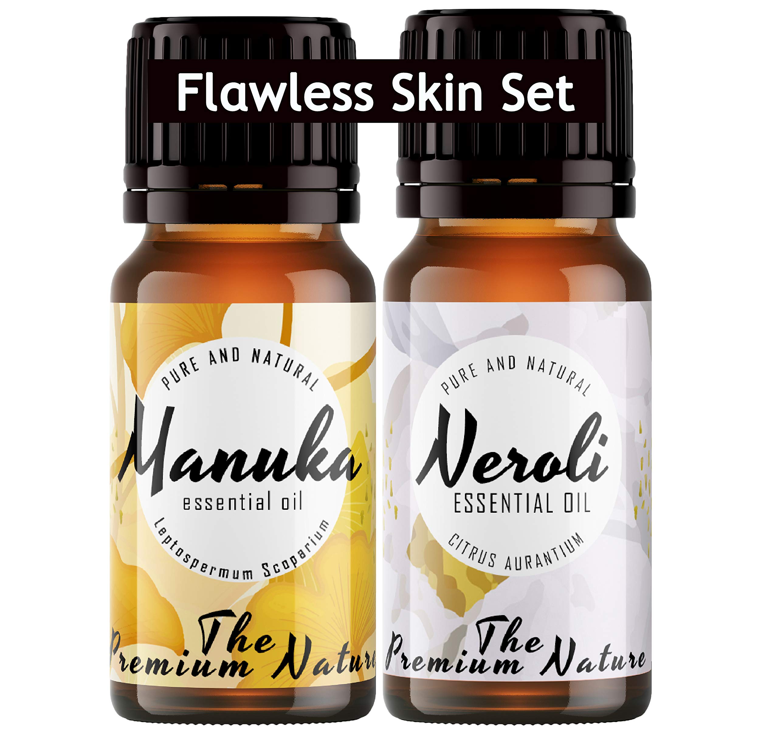 The Premium Nature Manuka Essential Oil & Neroli Oil - Flawless Skin Set to Clear Acne & Moisturize Skin - 100% Pure Therapeutic Grade Essential Oils Set - 2x10ml