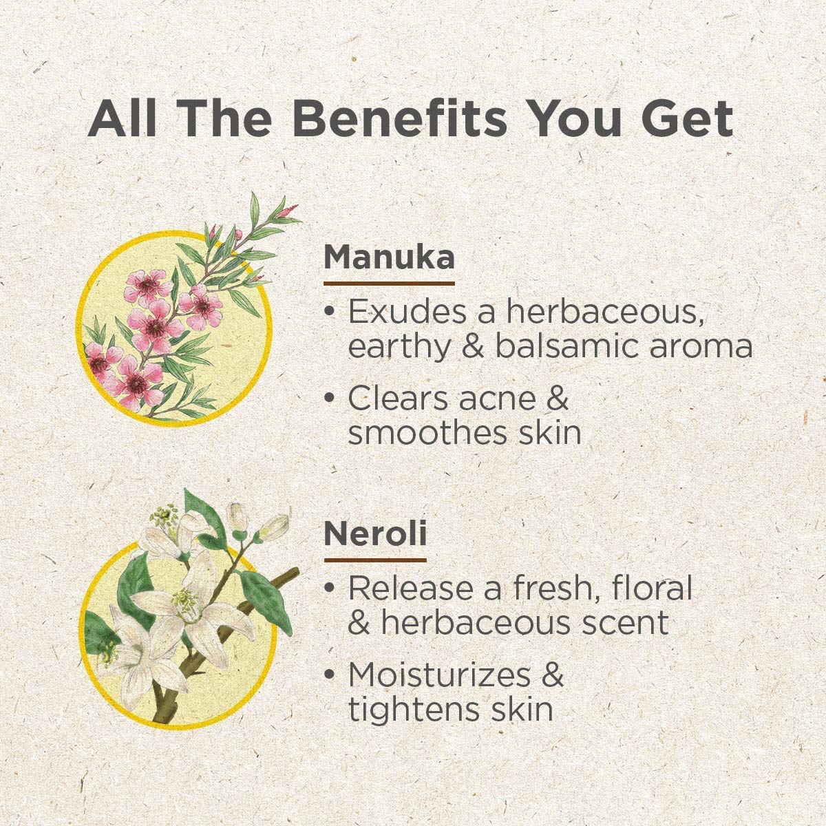 • FOR FLAWLESS COMPLEXION - Use manuka essential oil and neroli oil to clear acne & moisturize skin.