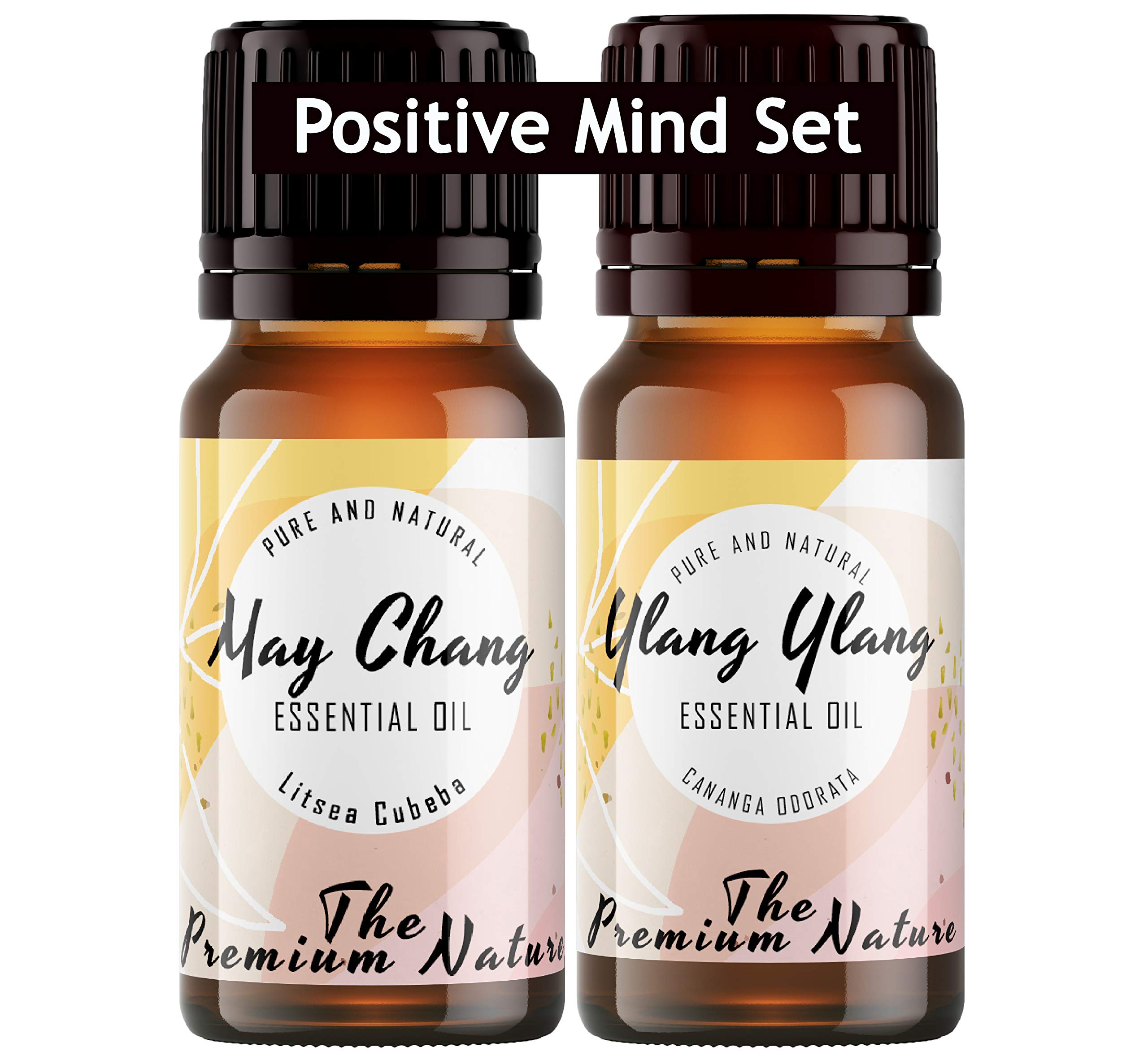 The Premium Nature May Chang Oil & Ylang Ylang Oil - Positive Mind Set to Soothe Skin Irritation & Muscle Aches - 100% Pure Therapeutic Grade Essential Oils Set - 2x10ml