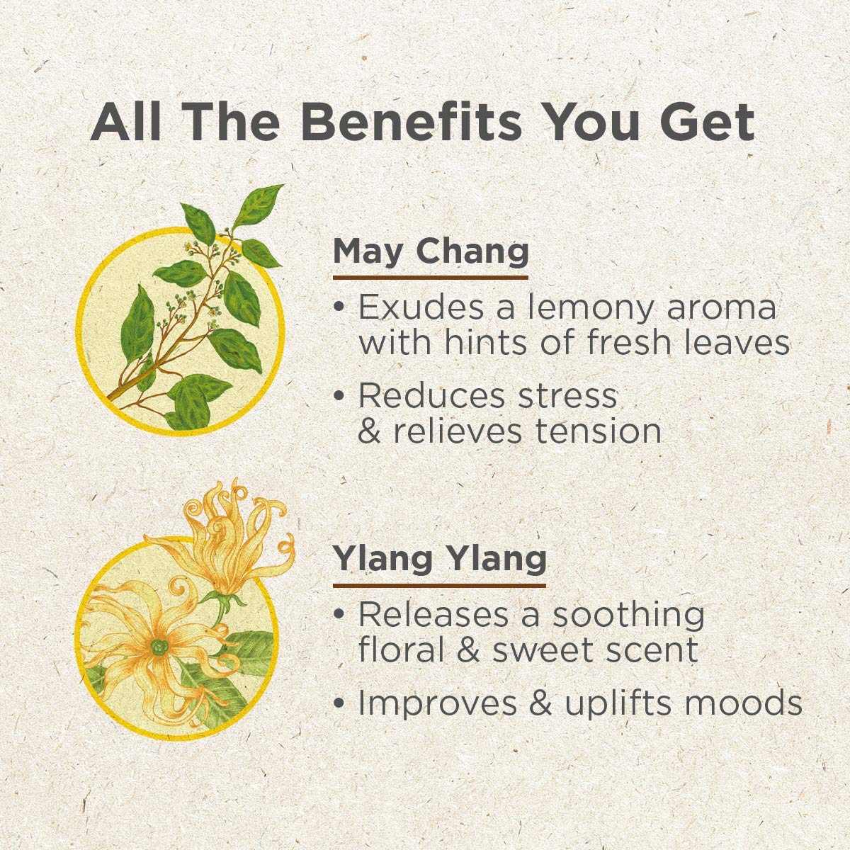 • ENHANCE YOUR MOOD The uplifting citrus notes of May Chang and the floral sweetness of Ylang Ylang create a cheerful and positive atmosphere when diffused.